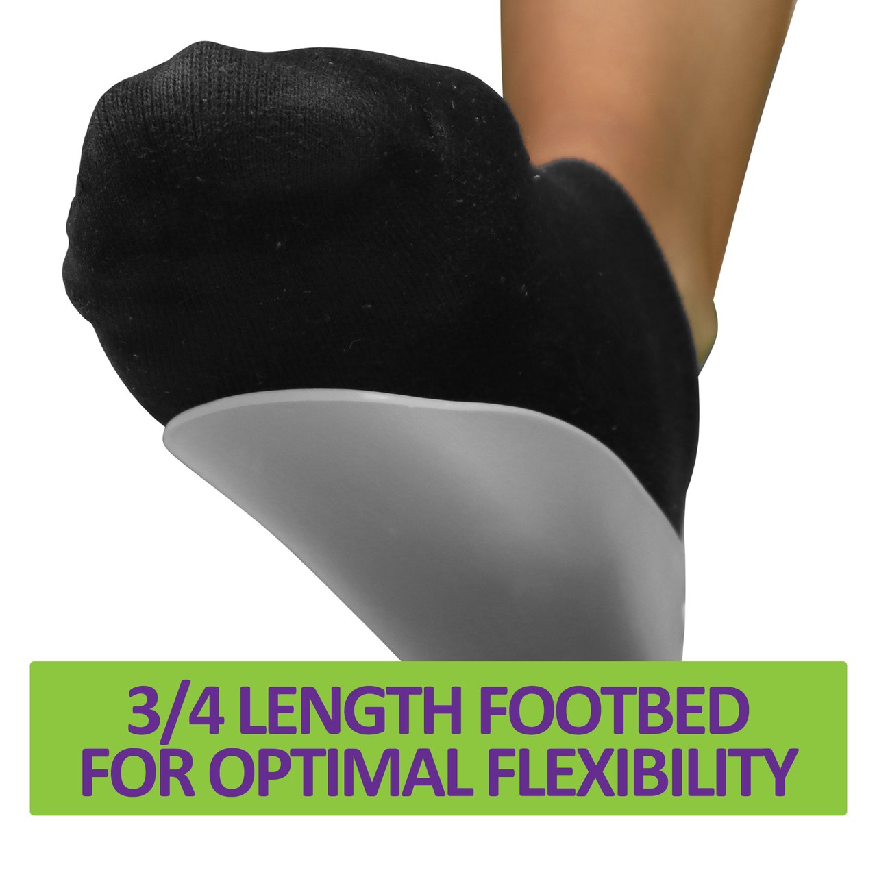 3/4 length footbed for optimal flexibility of toes. Can be trimmed with scissors, we recommend having a professional trim it if needed.