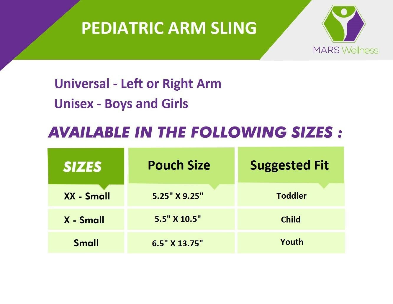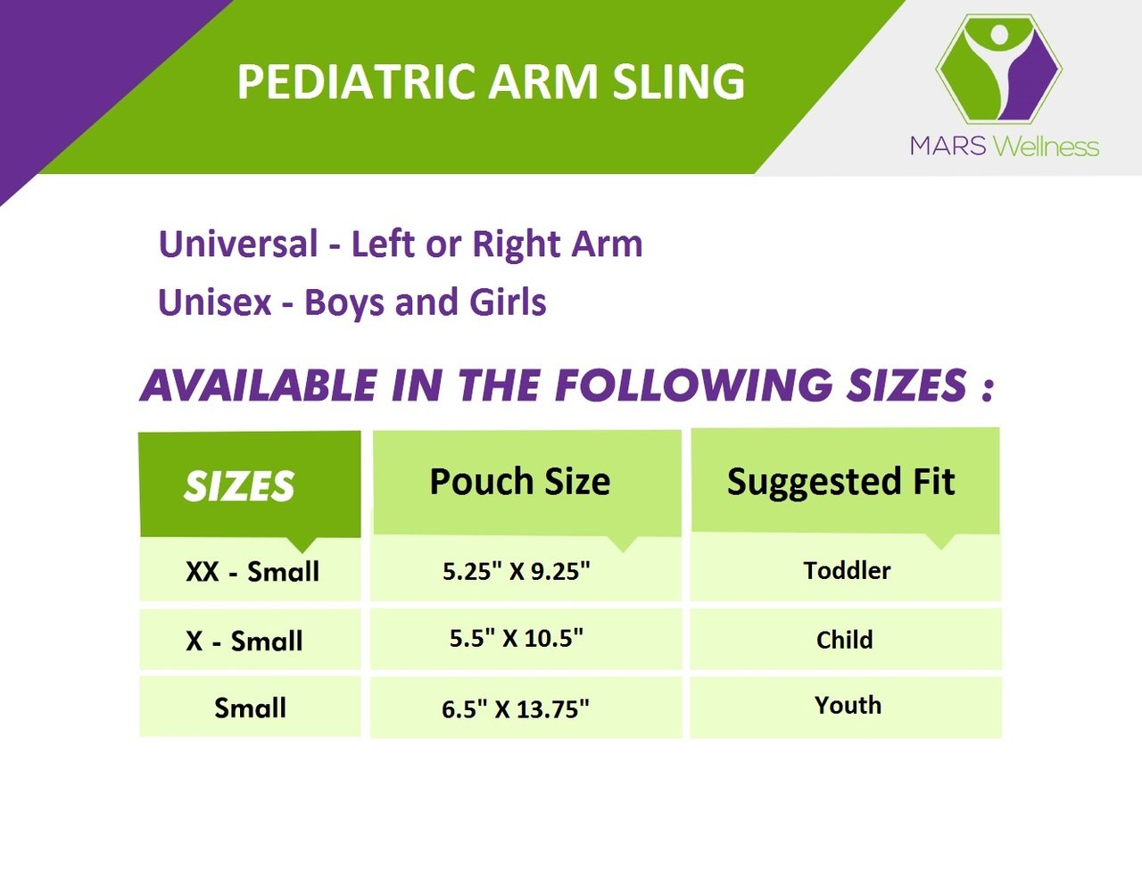Our pediatric arm sling is designed for maximal support when stability is desired for recovery from injuries or surgery of the ligaments, joints and bones of the arms, elbows, and shoulders; such as a torn rotator cuff, tennis elbow, or a fractured arm