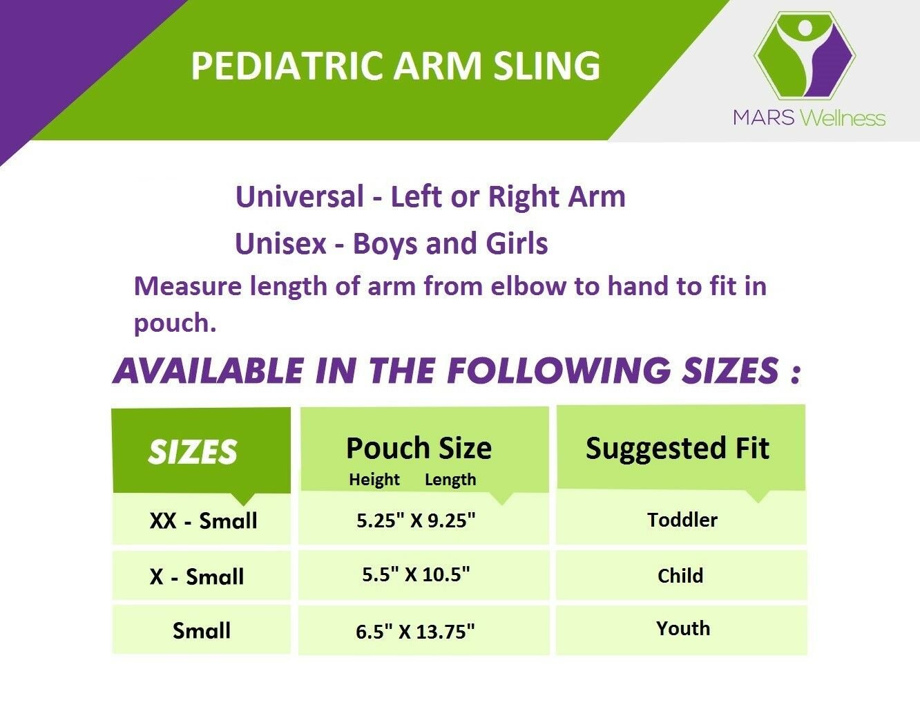 Our pediatric arm sling is designed for maximal support when stability is desired for recovery from injuries or surgery of the ligaments, joints and bones of the arms, elbows, and shoulders; such as a torn rotator cuff, tennis elbow, or a fractured arm