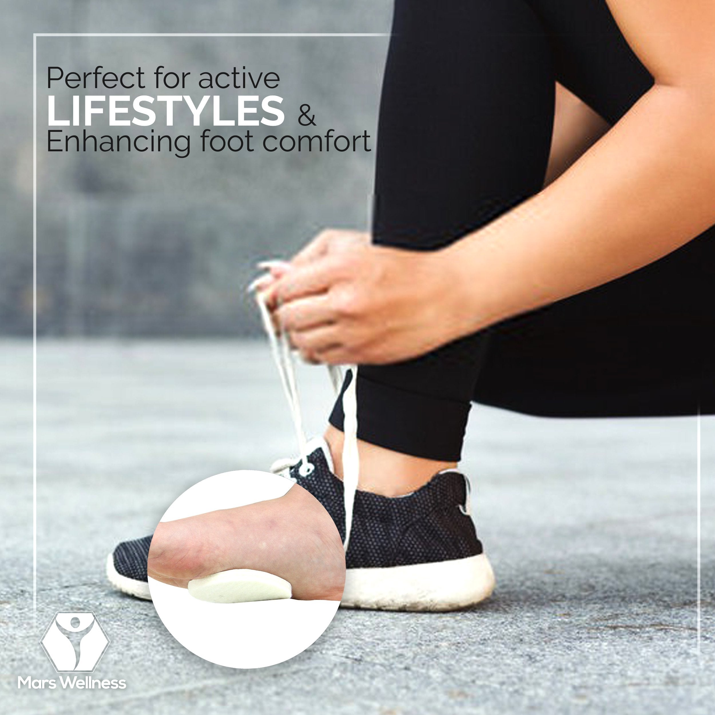 Was having chronic metatarsalgia bad enough that walking more than short distances was painful. After little or no benefit from various insoles recommended by podiatrists, I came across these and gave them a try. Was immediately able to walk and hike comfortably for as many miles as desired - basically resumed my prior level of activity. The adhesive is amazing - the first few times I wear them it takes a bit of effort to peel them off my feet, then they are easy to peel off. I rotate two pair on alternate days (gives them a chance to "breathe" between wearings). After a few weeks they don't feel like they have much "stick," but they can easily be made to stick by warming them: first briskly rubbing my sole, then applying the pad, then giving the pad a good brisk rub, then putting a sock on to hold it in place until well warmed up. Then the pad sticks fine for the rest of the day. This way two pair last 6 or 7 weeks before I discard them because of odor. Super economical! Couldn't be happier.