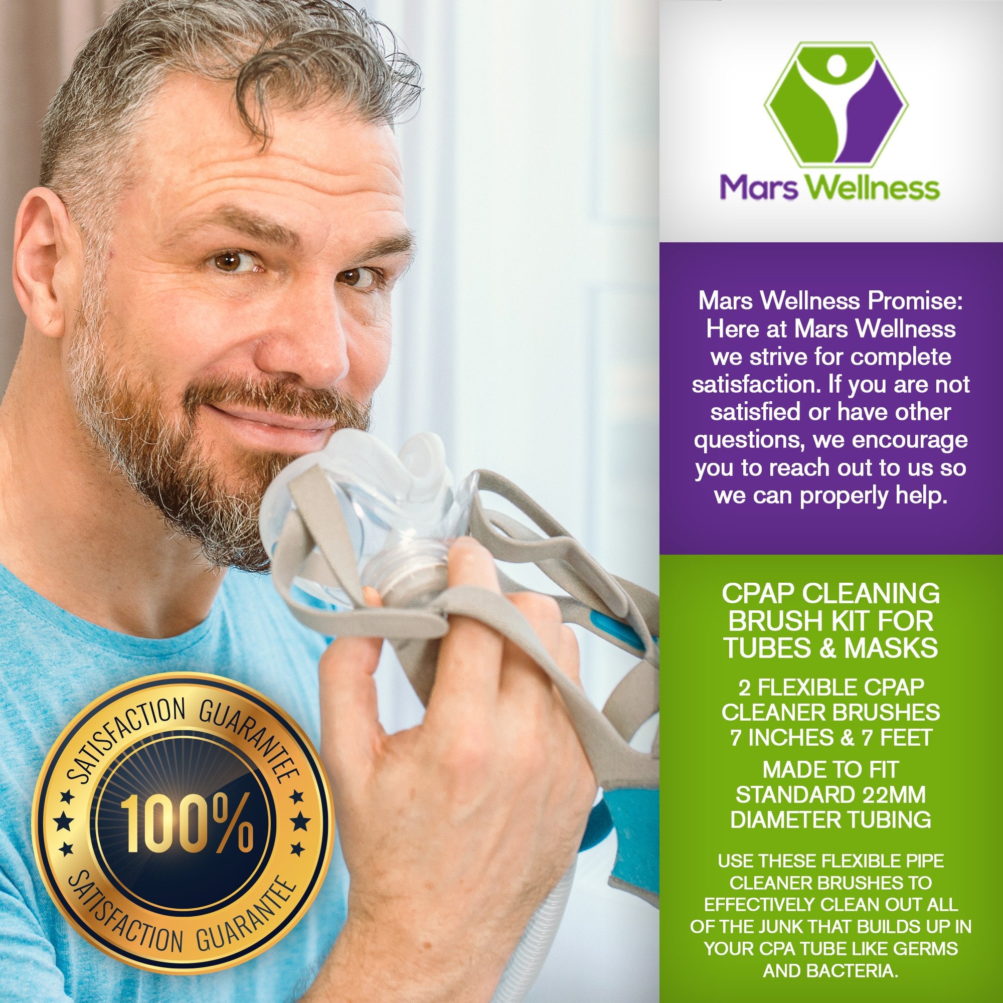 Mars Wellness CPAP Cleaning Brush Kit for Tubes & Masks - 2 Flexible CPAP Cleaner Brushes 7 Inches & 7 Feet - Made to Fit Standard 22mm Diameter Tubing