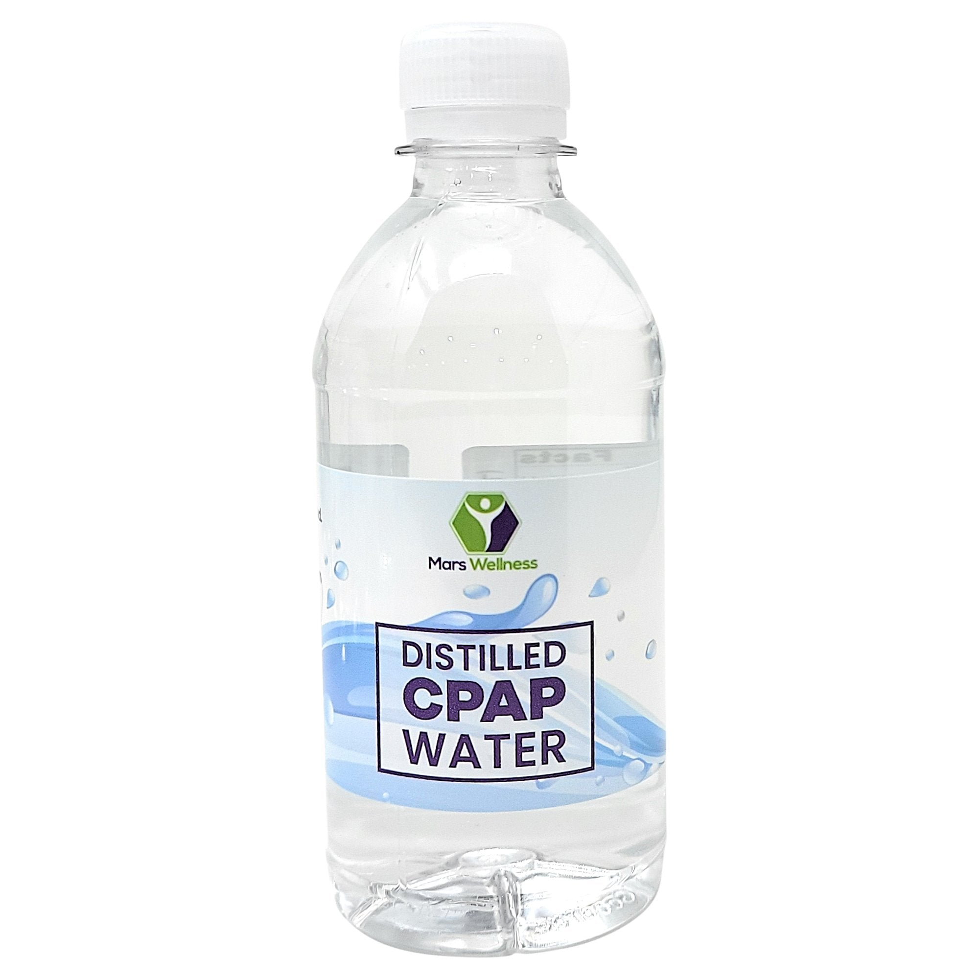Mars Wellness Distilled Water for CPAP Machines - Distilled Water for Humidifier, Medical Sterilization, Facial Steamer, Cosmetic Purposes, and More - CPAP Water for Travel - 12oz Bottles - 24 Pack