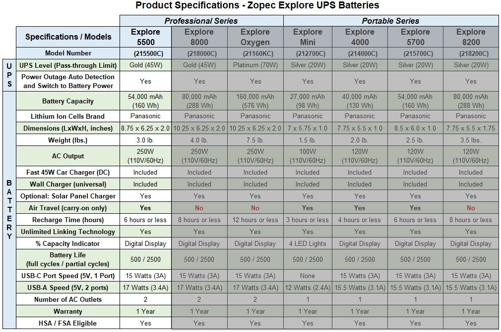 FAA/TSA COMPLIANT for AIR TRAVEL: Zopec EXPLORE 5500 capacity is 160 Wh. Carry-On Bag only. Can not be in checked-in luggage. Quantity limit is 2.