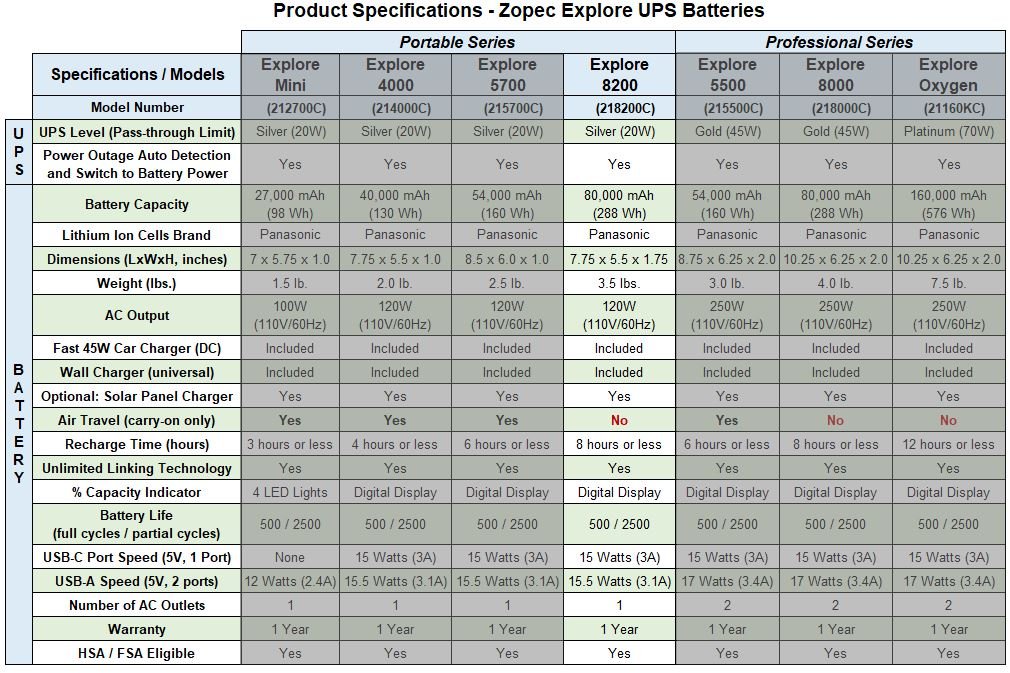 Common Uses: Camping/Hiking with CPAP 3 – 4 nights. RV over night with humidifier (mid-level)