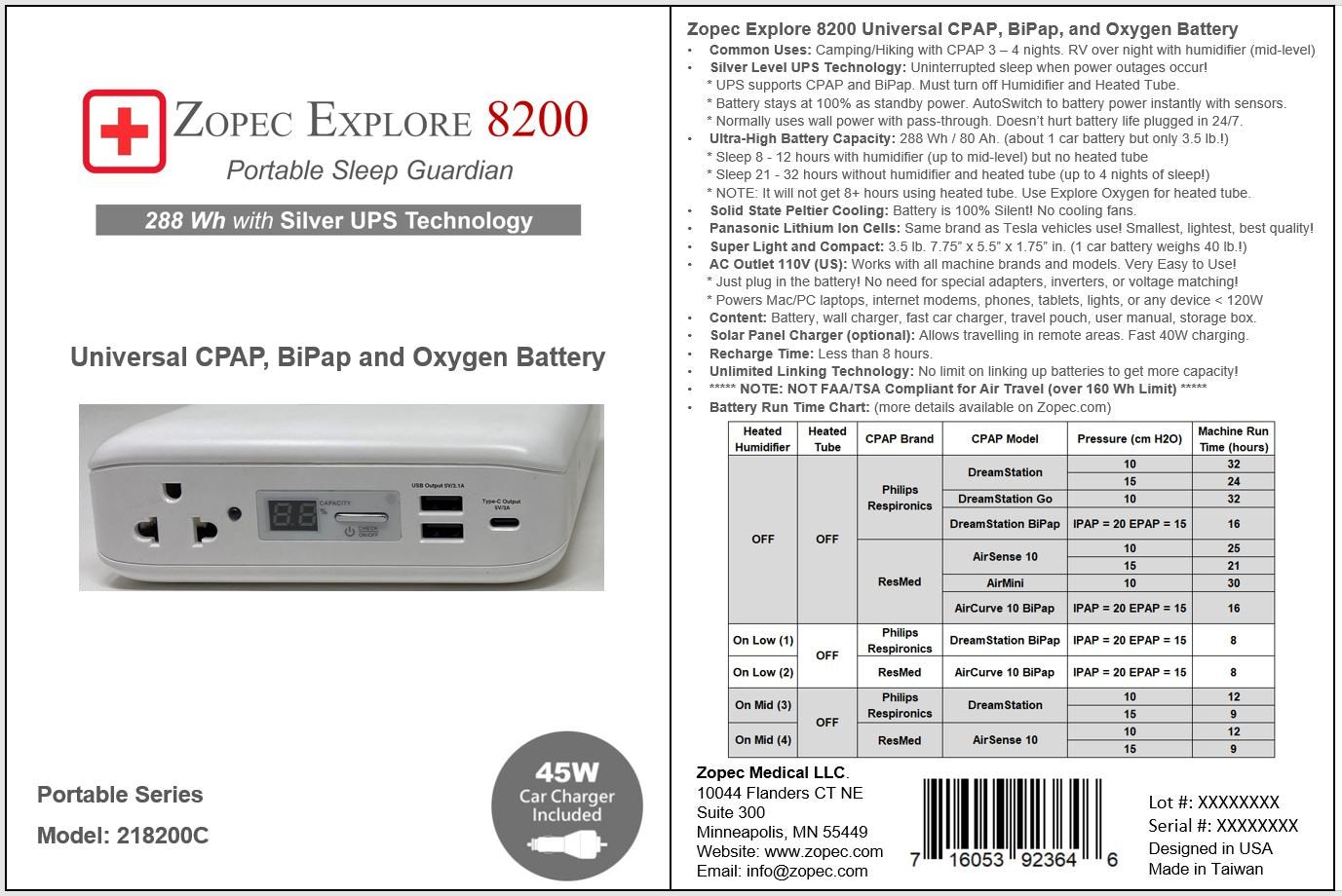 Zopec EXPLORE 8200 Travel CPAP Battery (up to 4 nights)