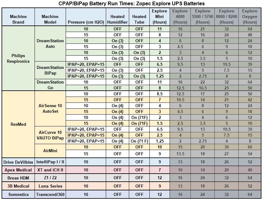 ULTRA POWERFUL and LONG RUN TIME: 1 - 1.5 nights on average or 7 - 12 hours depending on machine parameters. (NOTE: Use battery to power CPAP unit only. All CPAP batteries will lose 50% - 80% run time if heated humidifier and/or heated hose were used. See images for Run Time Chart with various machine brand and settings. We don't recommend using heated humidifier and heated tube with this CPAP battery.)