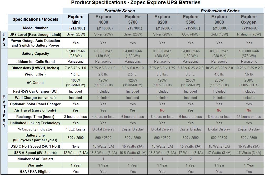 FAA/TSA COMPLIANT for AIR TRAVEL: Zopec EXPLORE Mini capacity is 97 Wh. Carry-On Bag only. Can not be in checked-in luggage. No quantity limit.