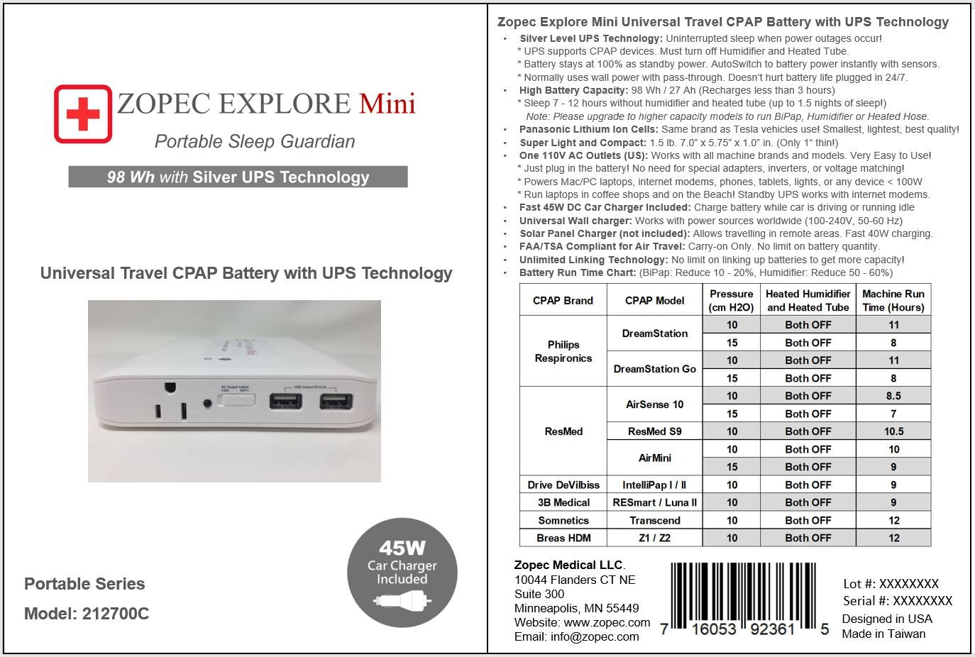 Zopec EXPLORE Mini Travel CPAP Battery (up to 1.5 nights)