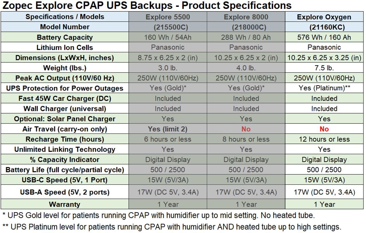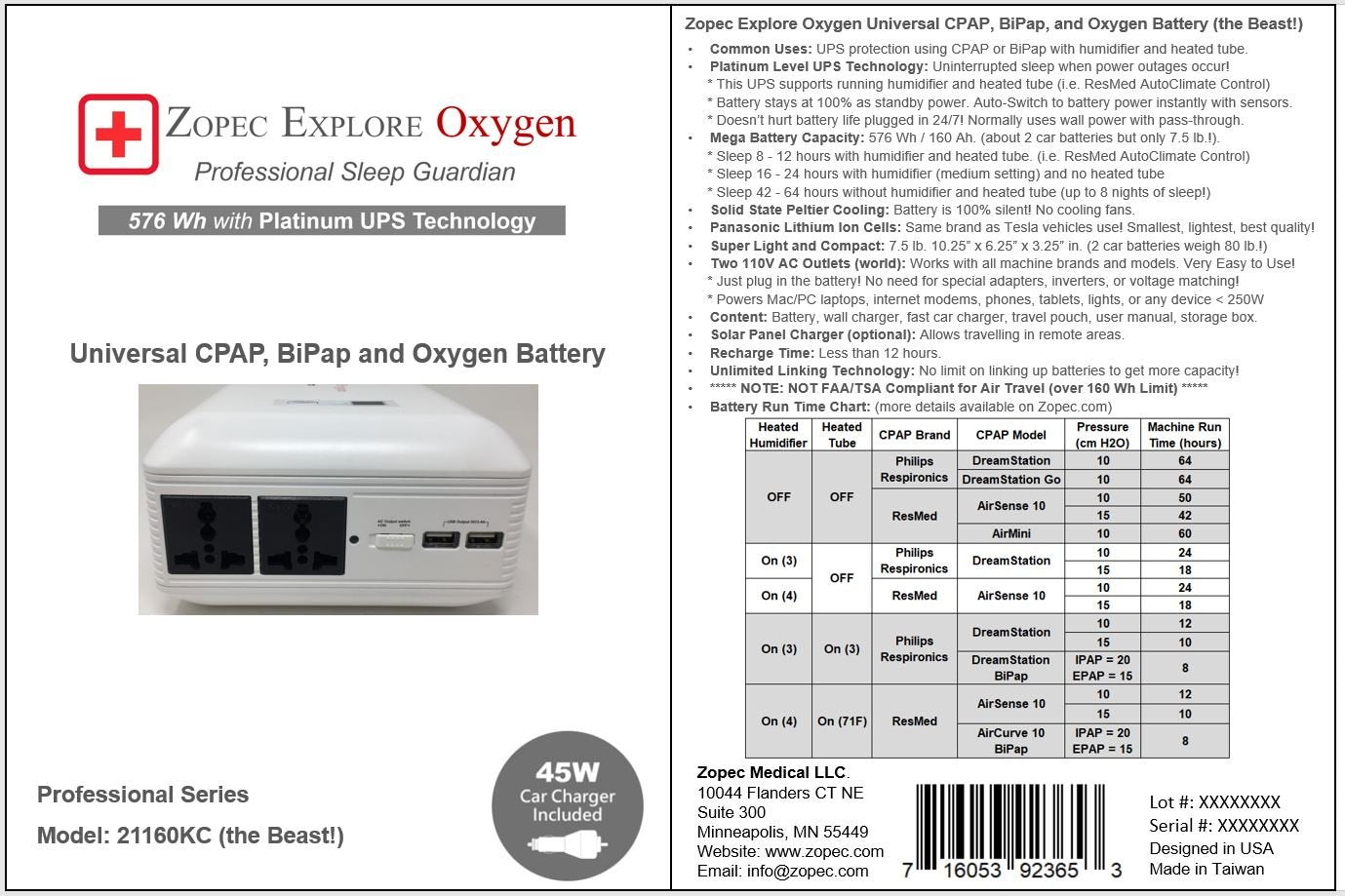 Zopec EXPLORE Oxygen CPAP Backup Battery with Online UPS (up to 8 nights, Platinum Level)