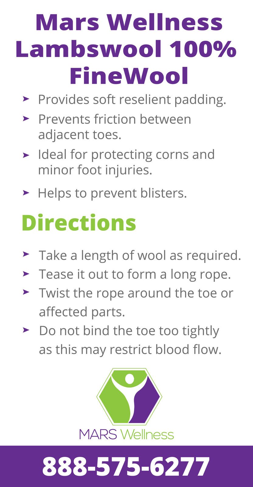 Lambs Wool provides cushioning and pain relief between toes. It protects tender areas between toes and soft corns. It separates toes to relieve pressure while allowing air to reach affected parts.