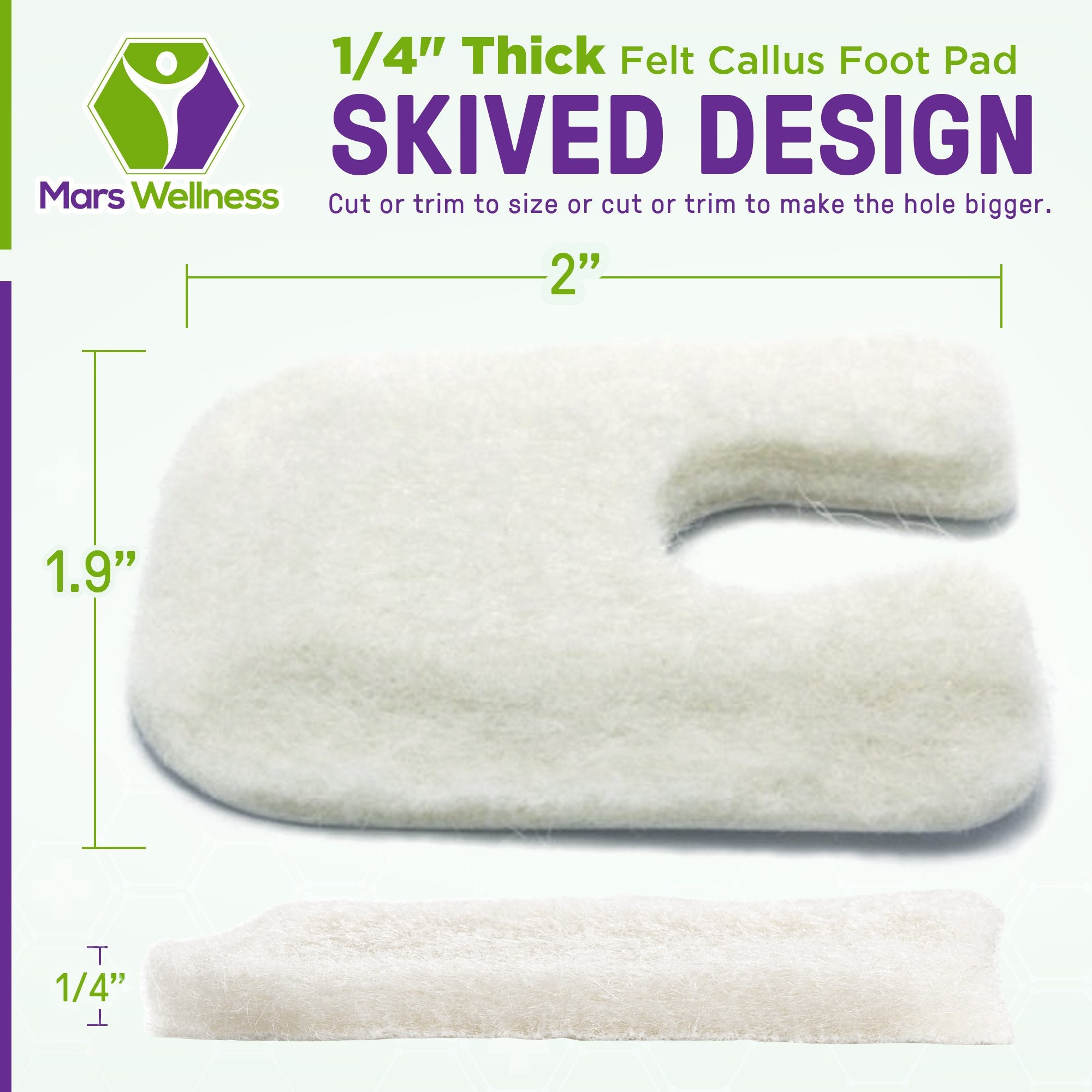 U Shaped Felt Callus Pads - Adhesive Foot Pads That Protect Calluses from Rubbing On Shoes - Skived 1/4"