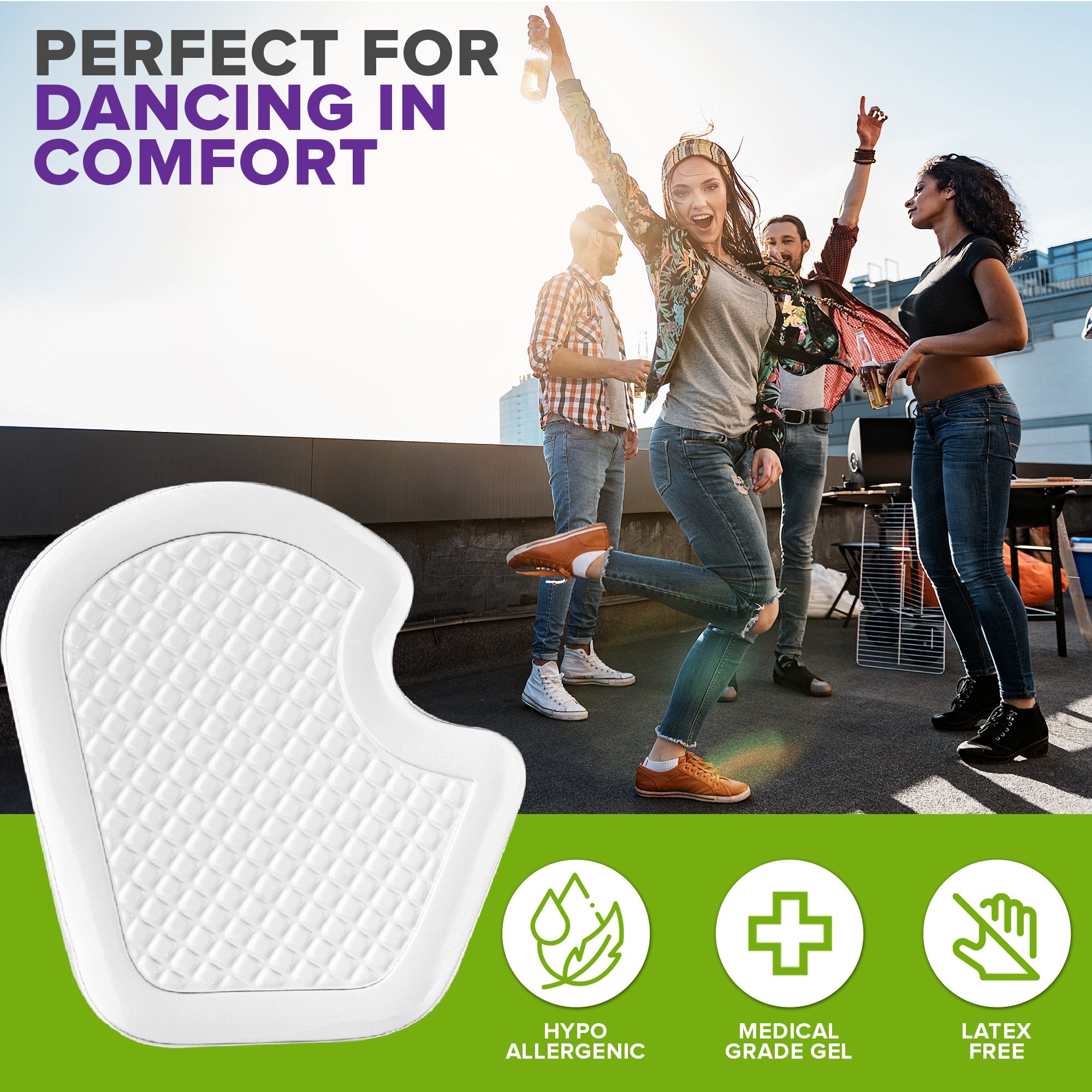 Are pain issues on the balls of your feet negatively impacting your life? Are you sick and tired of using metatarsal pads with a weak adhesive backing? If so, our Gel Dancers Pads for Feet could be the answer to your prayers. Foot pain coming from the ball of foot can be caused by many different things – a broken sesamoid bone, a metatarsal fracture, or Morton’s Neuroma. These aches and pains don’t have to keep you off of your feet, though! Our gel foot cushion pads can help relieve ball of foot pain and provide enhanced protection, so you can get back on your feet and get out there to experience all that life has to offer with those that you loved the most. Our shock-absorbing dancer pads are made from a latex-free, medical-grade gel that forms a strong bond with the bottom of your foot. The pads will not slip or slide off while you’re walking, hiking, or doing any other physical activity. You can wear these dance pads for nearly any activity and they can be washed, so you can reuse them many times over. All you have to do is hand wash each one with warm water and soap, air dry, and they’ll be ready to rock again. The gel that we use to make them is designed to retain its adhesiveness even after numerous washes and uses. Your Wellness Is Our Priority