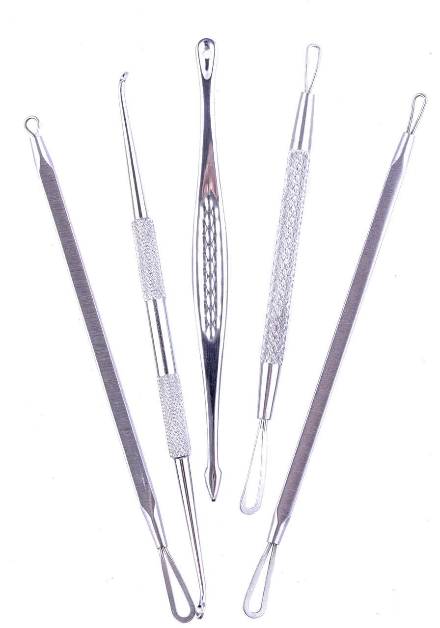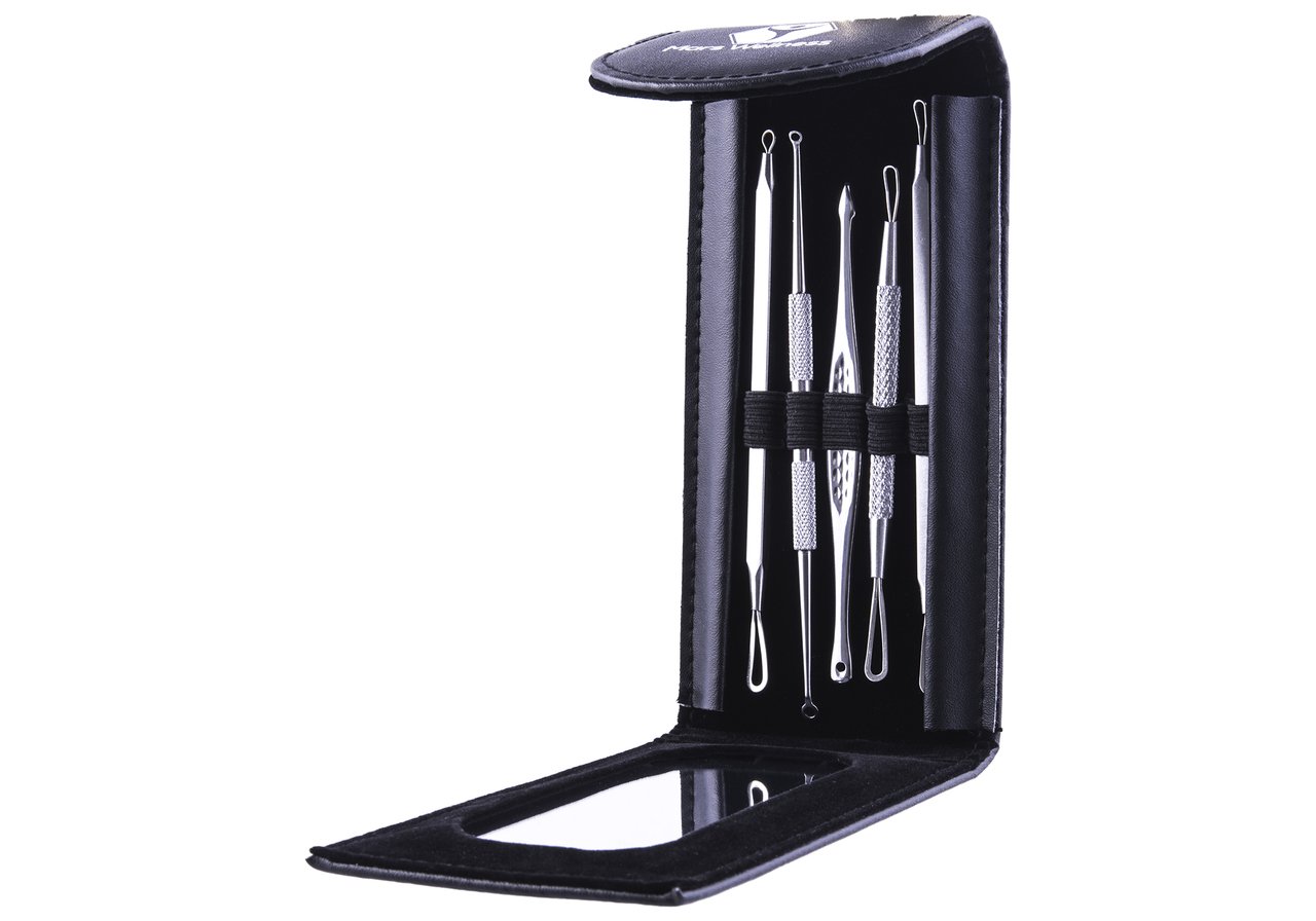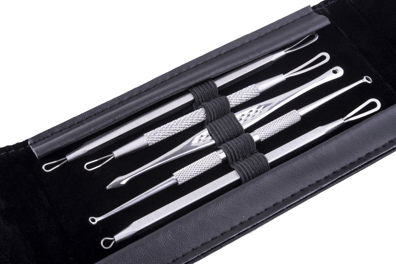 The Comedone blemish extractor set includes all the necessary tools to tackle the toughest blackheads and other pimples to achieve natural, smooth skin. No more sitting at the mirror and trying to squeeze those pimples-our 5 piece double-sided blackhead remover tools will do the job easily and efficiently without the risk of infection or scars.