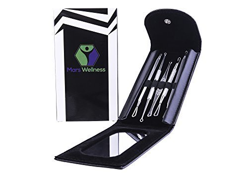 5 Pc Premium Professional Comedone Blackhead/Pimple Extractor and Blemish Remover Tool - Mirror Included