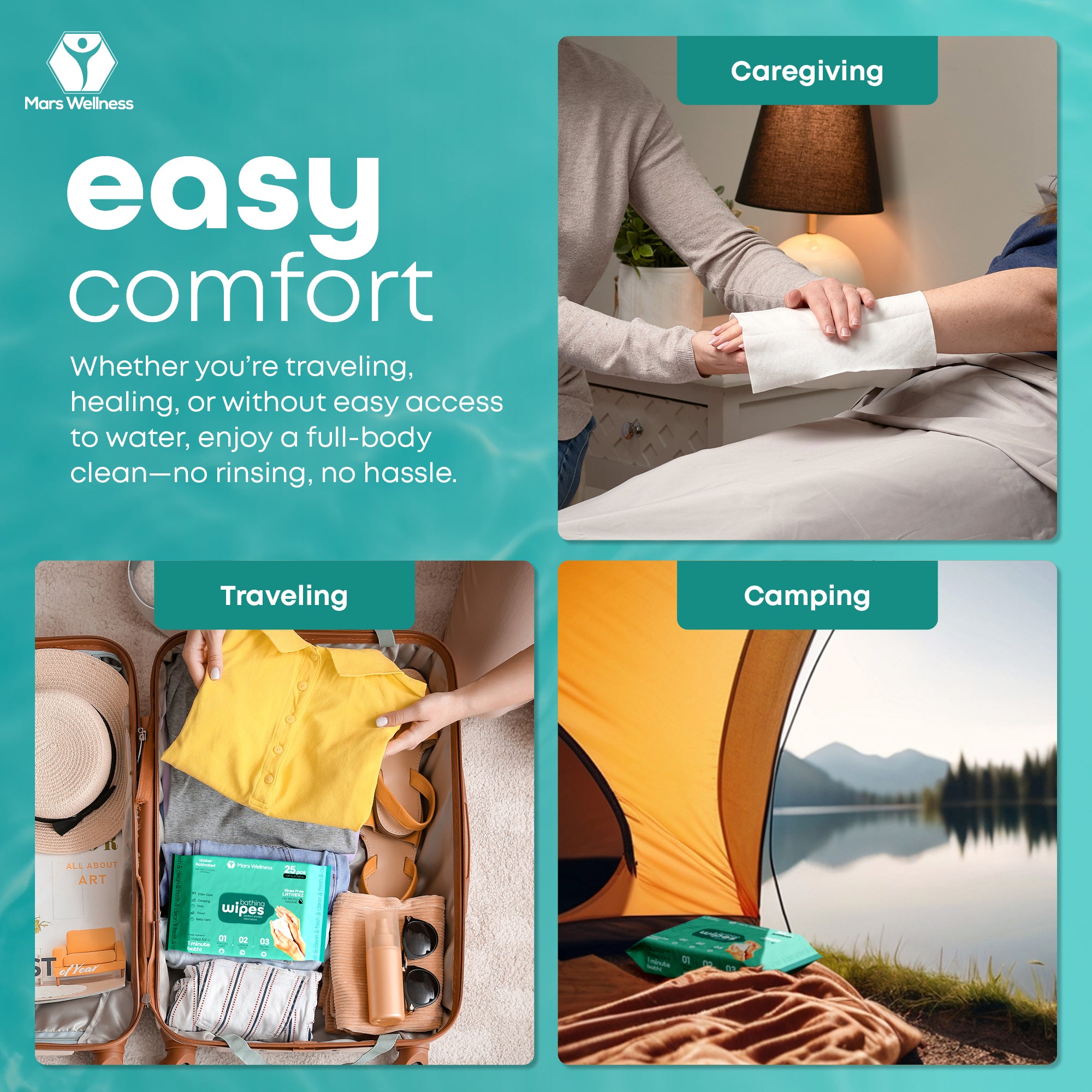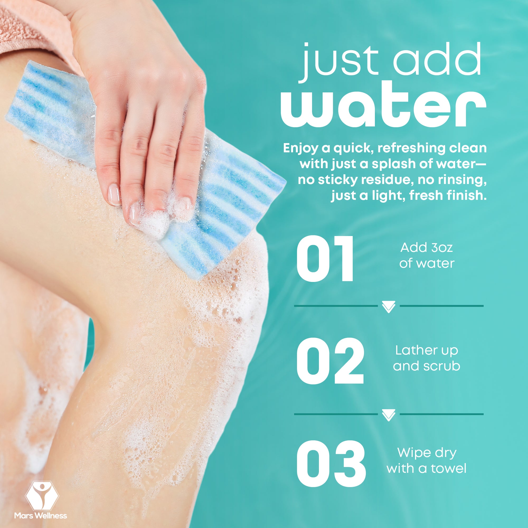 No Rinse Washing/Bathing Wipes - Just Add Water - Shower Cleansing Sponge/Wipes - Original Latherz - Soap Infused Dry Shower - Pack of 25 Cloths