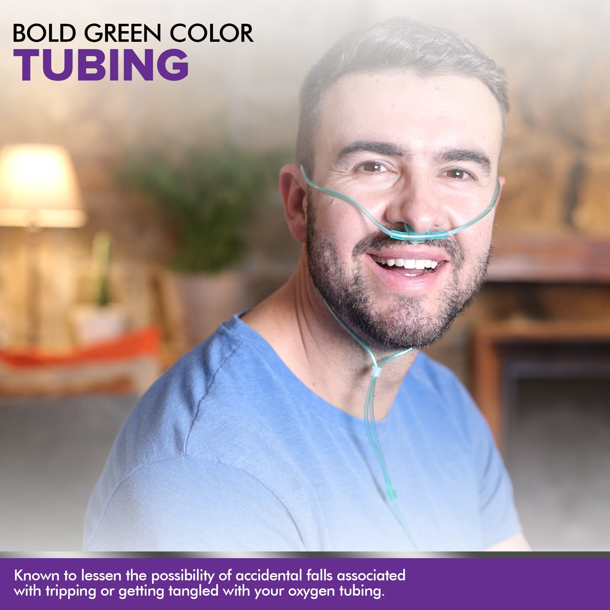 BOLD GREEN TUBING - This tubing features a bold, green color which is known to lessen the possibility of accidental falls associated with tripping or getting tangled with your oxygen tubing.