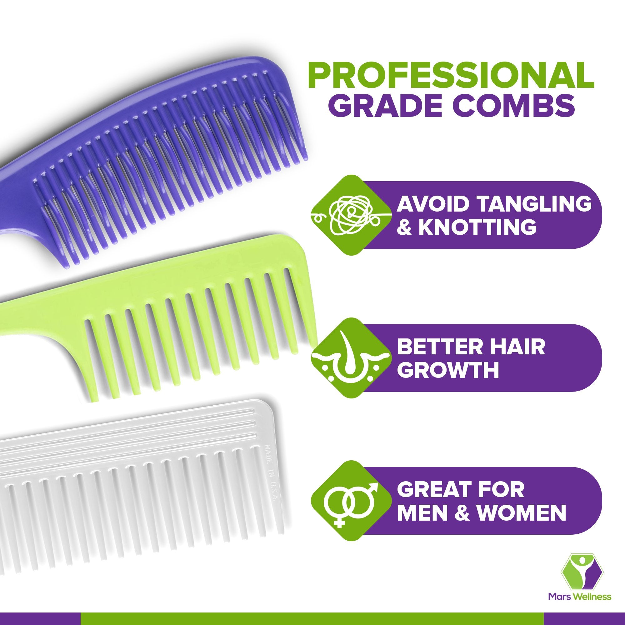 PREMIUM QUALITY - Our Mars Wellness professional hair combs are designed and manufactured right here in the USA of the highest quality plastics and other materials, never compromising on quality.
