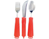 3 Piece Super Easy Grip Red Flatware Set - Bendable Built Up Large Fork, Knife, and Spoon