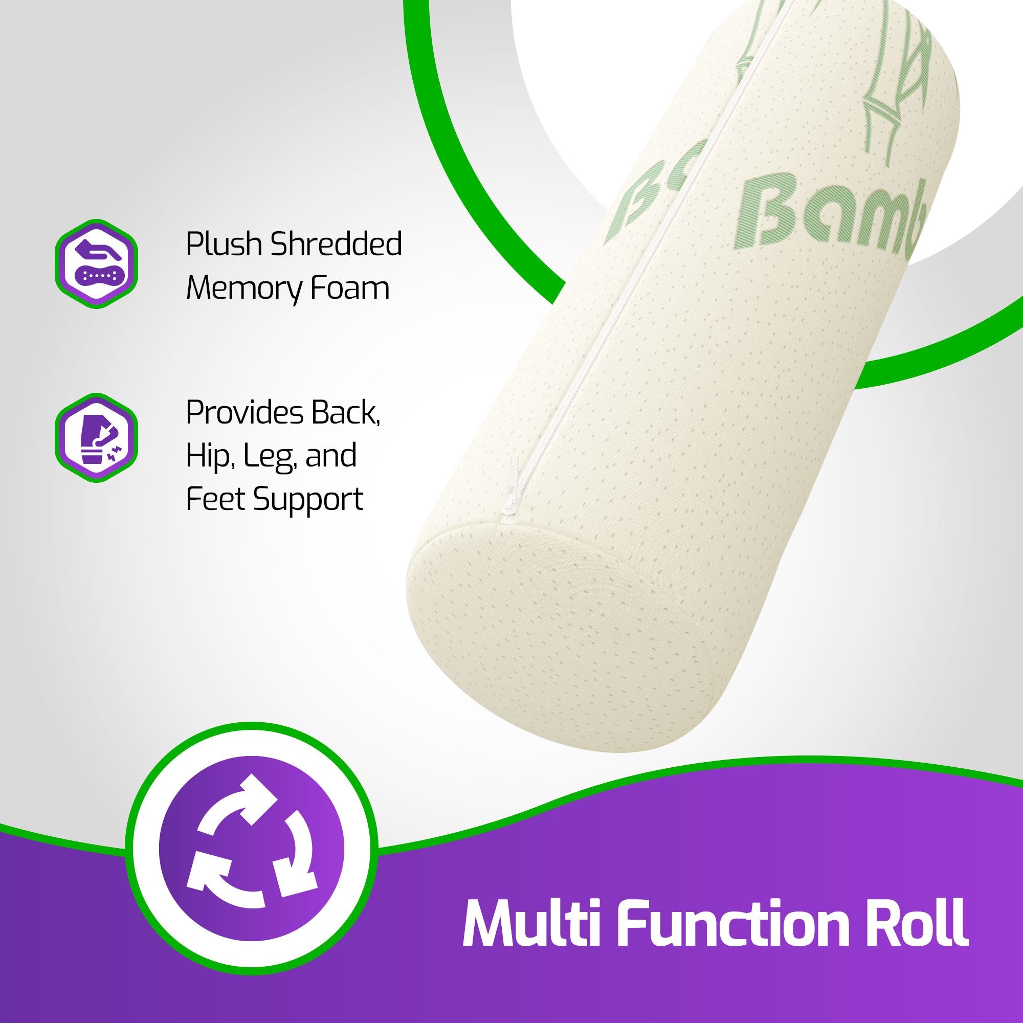 Cervical Neck Pillows for Pain Relief Sleeping - Cylinder Roll Pillow - Shredded Memory Foam Bolster Pillow for Bed - Breathable, Hypoallergenic Round Neck Pillow - Comfortable Leg, Neck Support Pillow