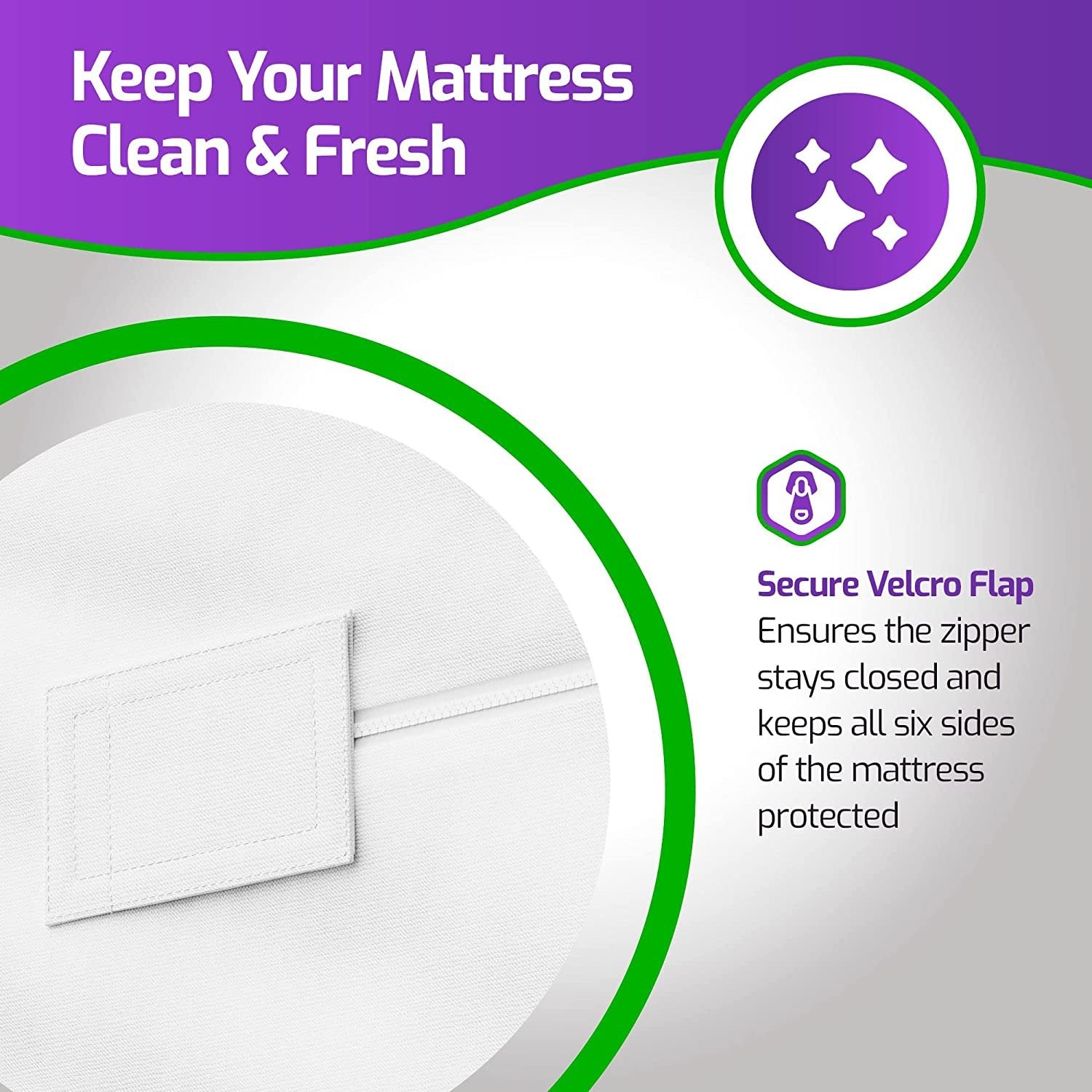 Cotton Mattress Encasement - Ultimate Waterproof Protection and Zippered Closure - Cotton and Vinyl Waterproof Bed Bug Mattress Protector