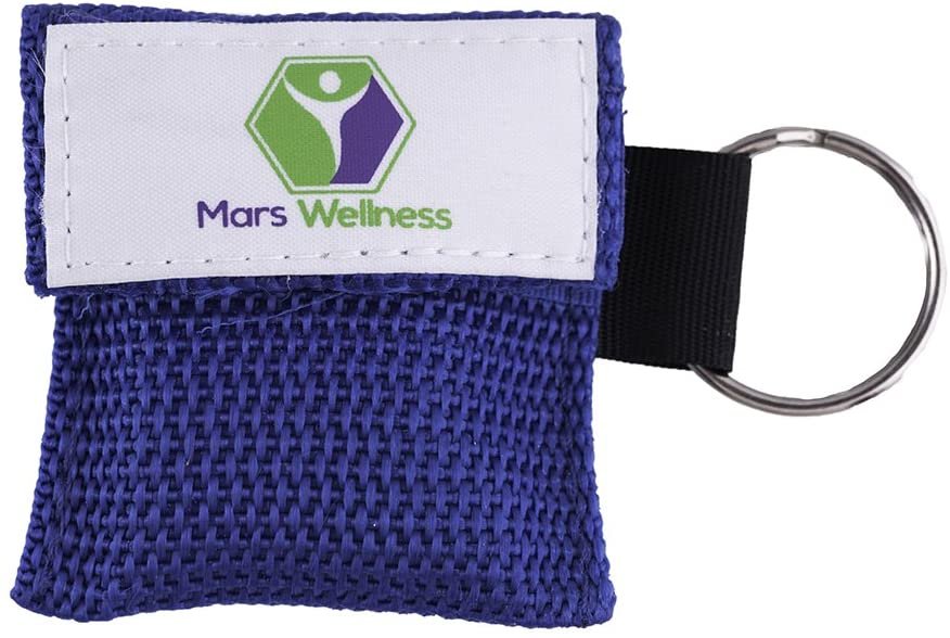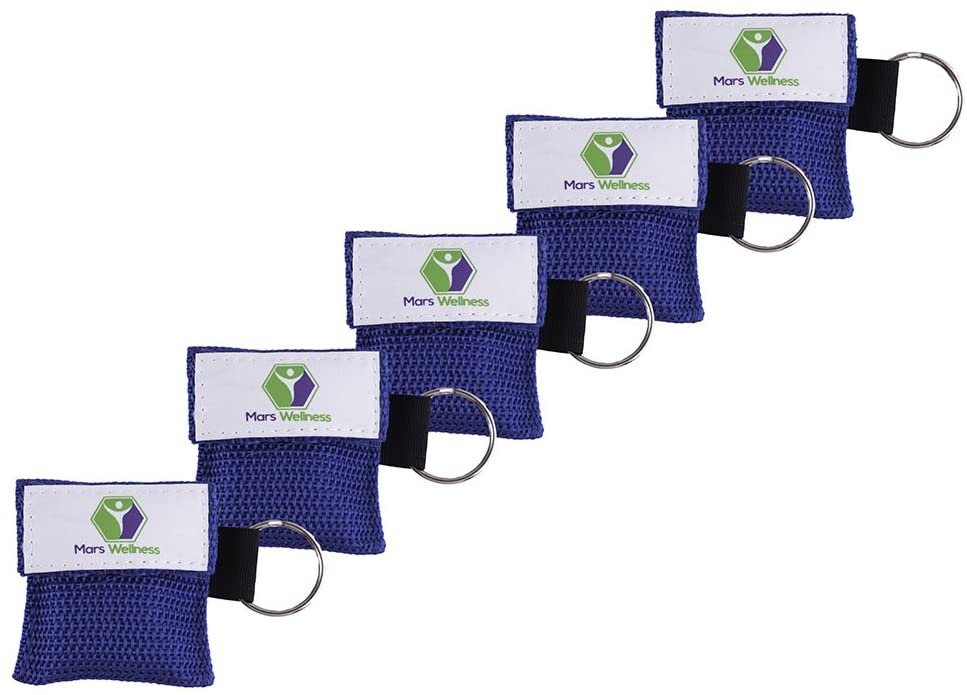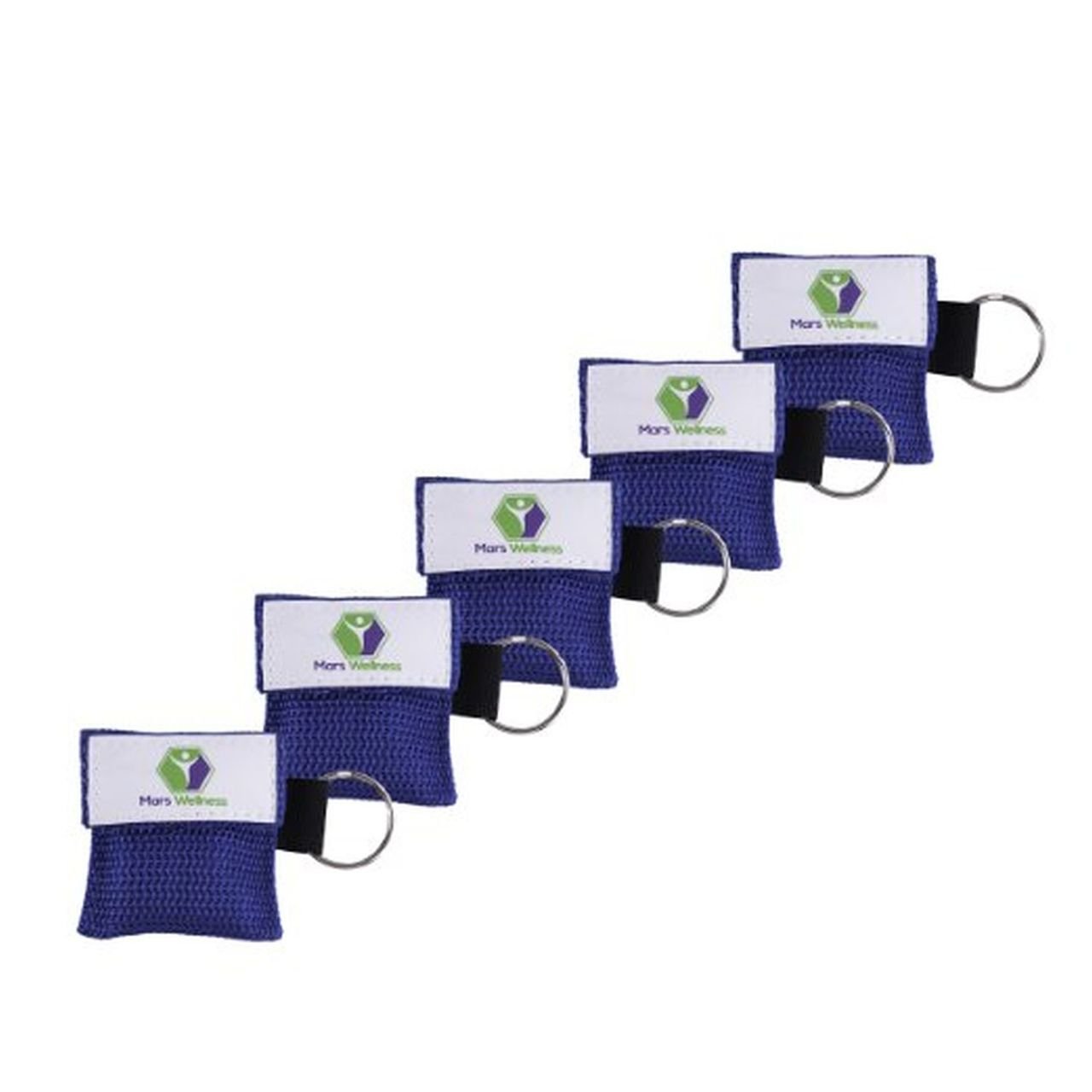 CPR Face Mask Key Chain Kit - One Way Valve and Face Sheild Masks Kit - Blue (5-Pack)