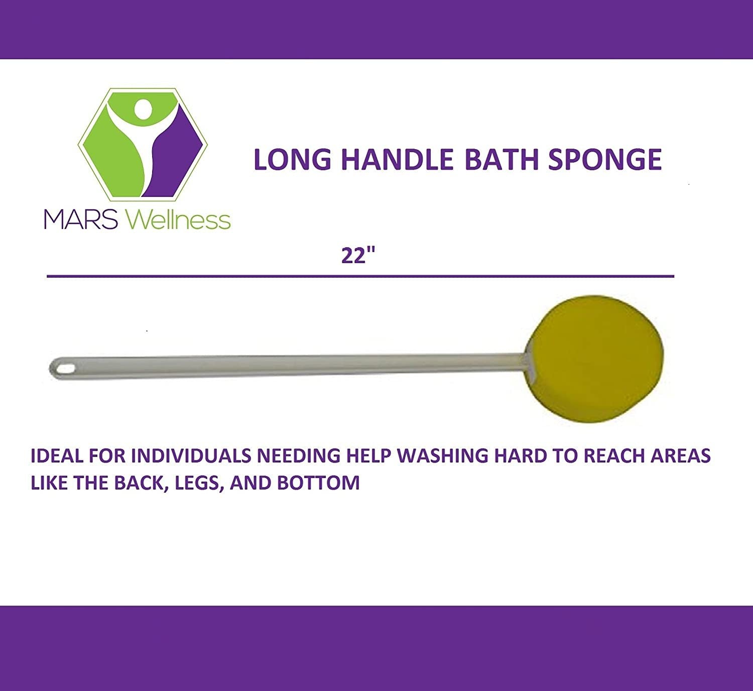 Long Handle Bath Sponge Perfect for use in the shower or bath. Helpful for people with limited shoulder range of motion The flexible plastic handle can be bent without using a heat gun.