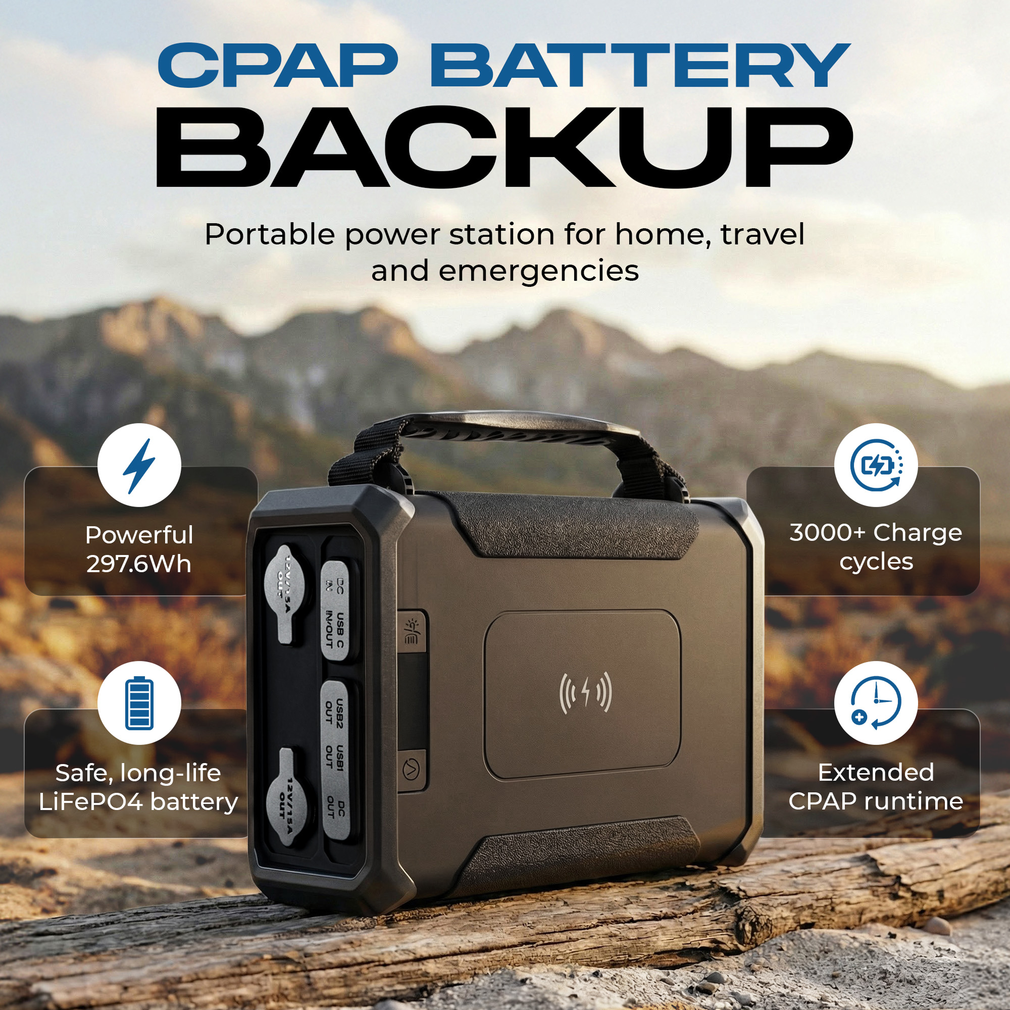 Mars Wellness CPAP Battery Backup - Power Supply Backup Great For CPAP Machines - 297Wh - Compatible With Airsense 11, Airsense 10, + Camping Backup