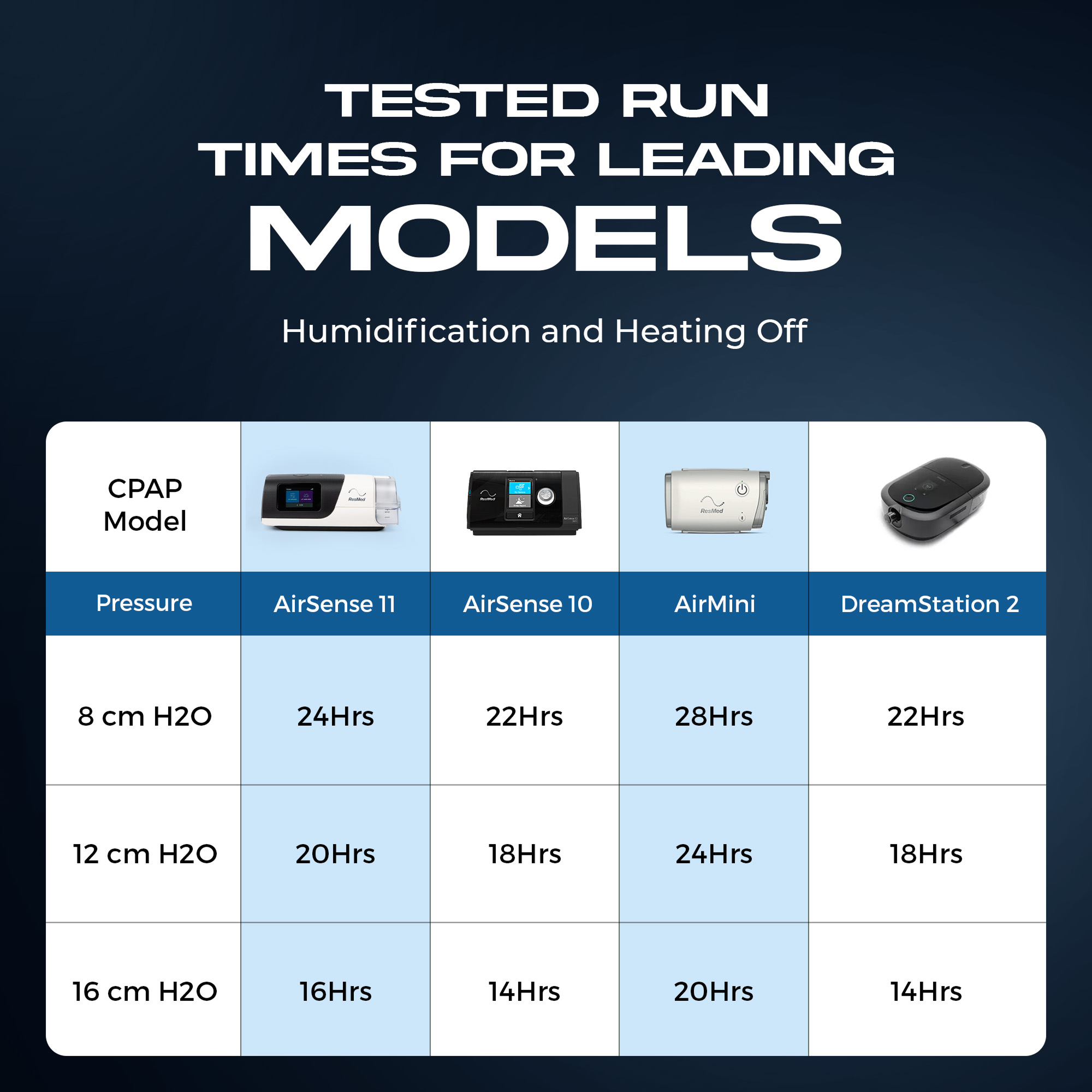 • Power When You Need It Most. 96000mAh capacity provides 3-4 nights of CPAP operation during outages or camping (without humidifier/heated tube).