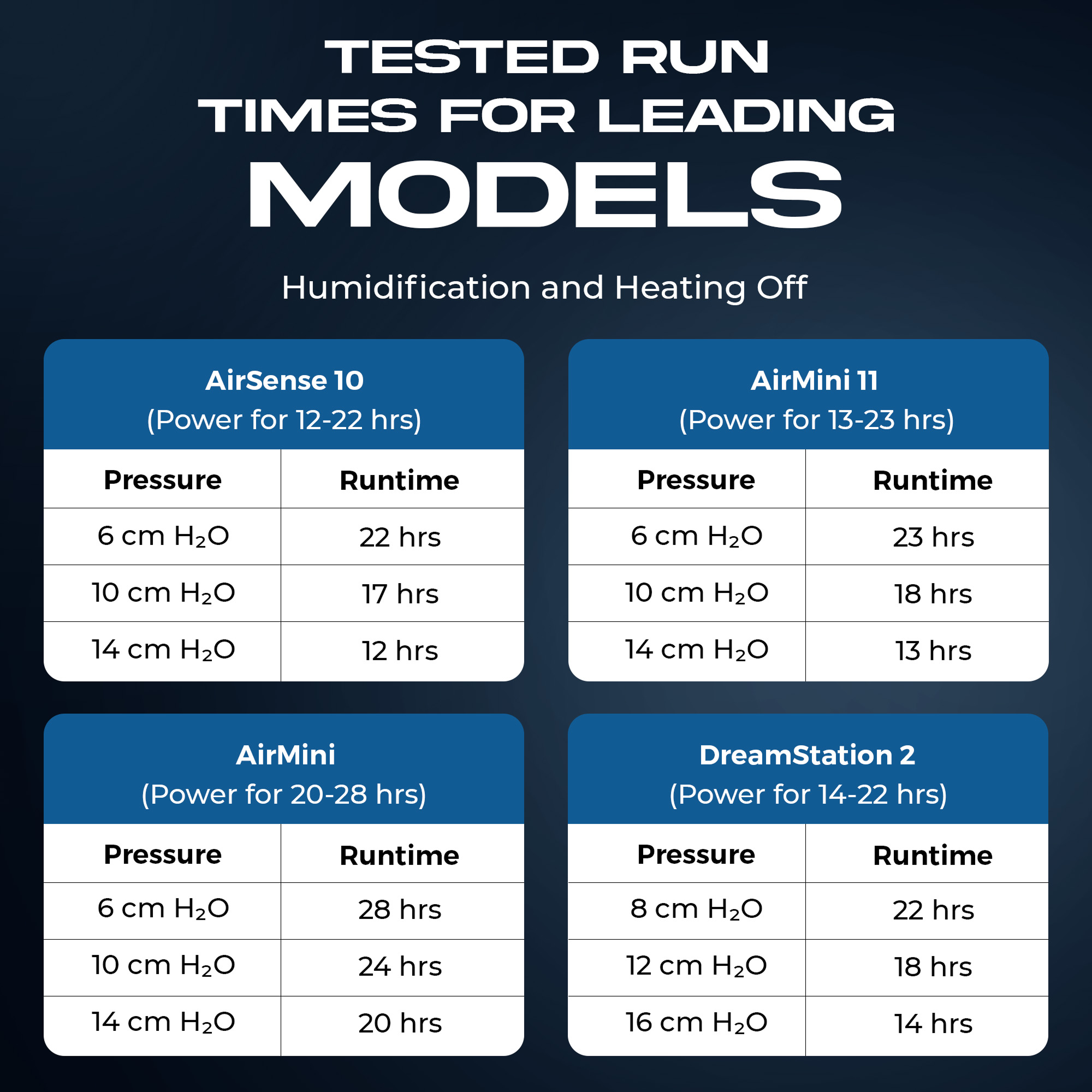 • Universal Compatibility Made Simple. Compatible with ResMed AirSense 10/11, AirCurve series, AirMini, Philips DreamStation 1 & 2, and Luna G3 models. Intelligent DC output adjusts between 12V-24V with four included cables.