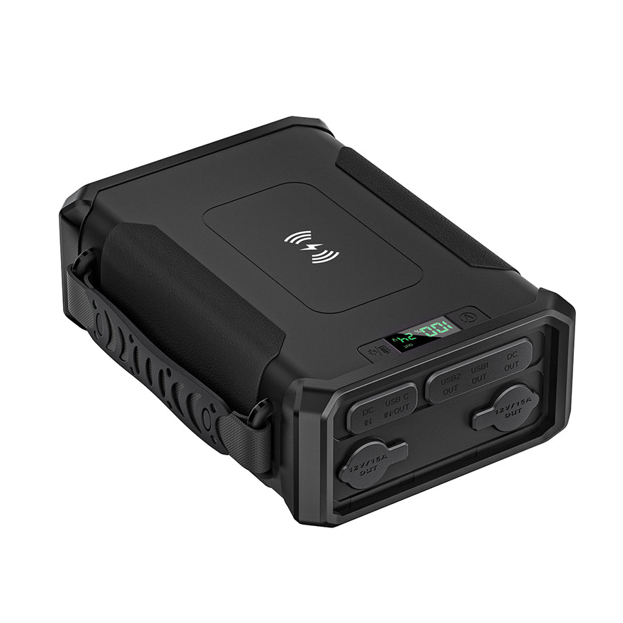 • Versatile Charging Hub. Seven output ports: dual USB-A, USB-C PD, 12V socket, adjustable DC output, plus wireless charging pad. Powers devices up to 180W simultaneously.