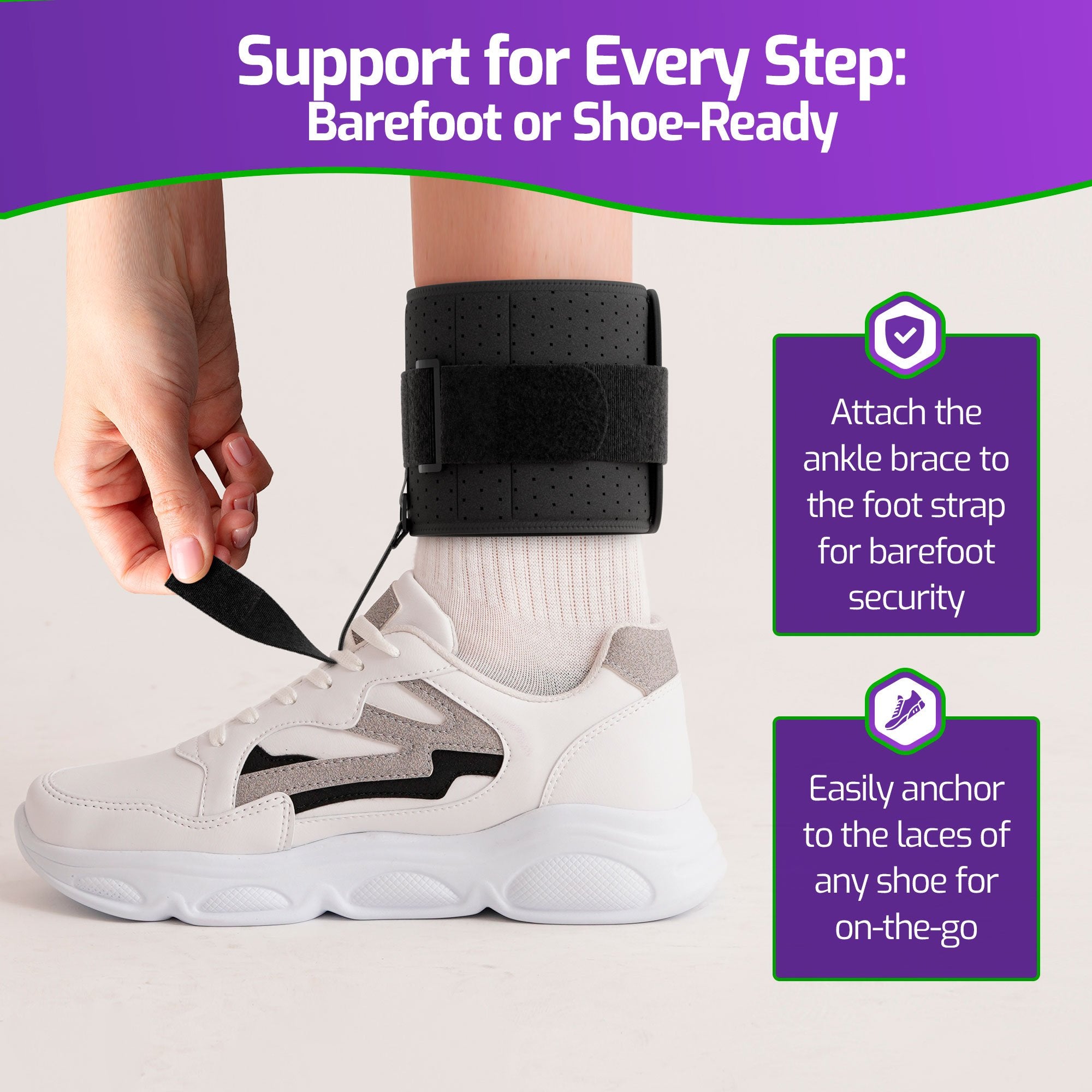 • WITH OR WITHOUT SHOE - The unique design of our afo foot drop brace lifts the front of the foot, making it easier to clear the ground while walking. Our AFO Brace is designed to be worn without shoes but by attaching the strap to your shoelaces they can be worn with laced shoes.