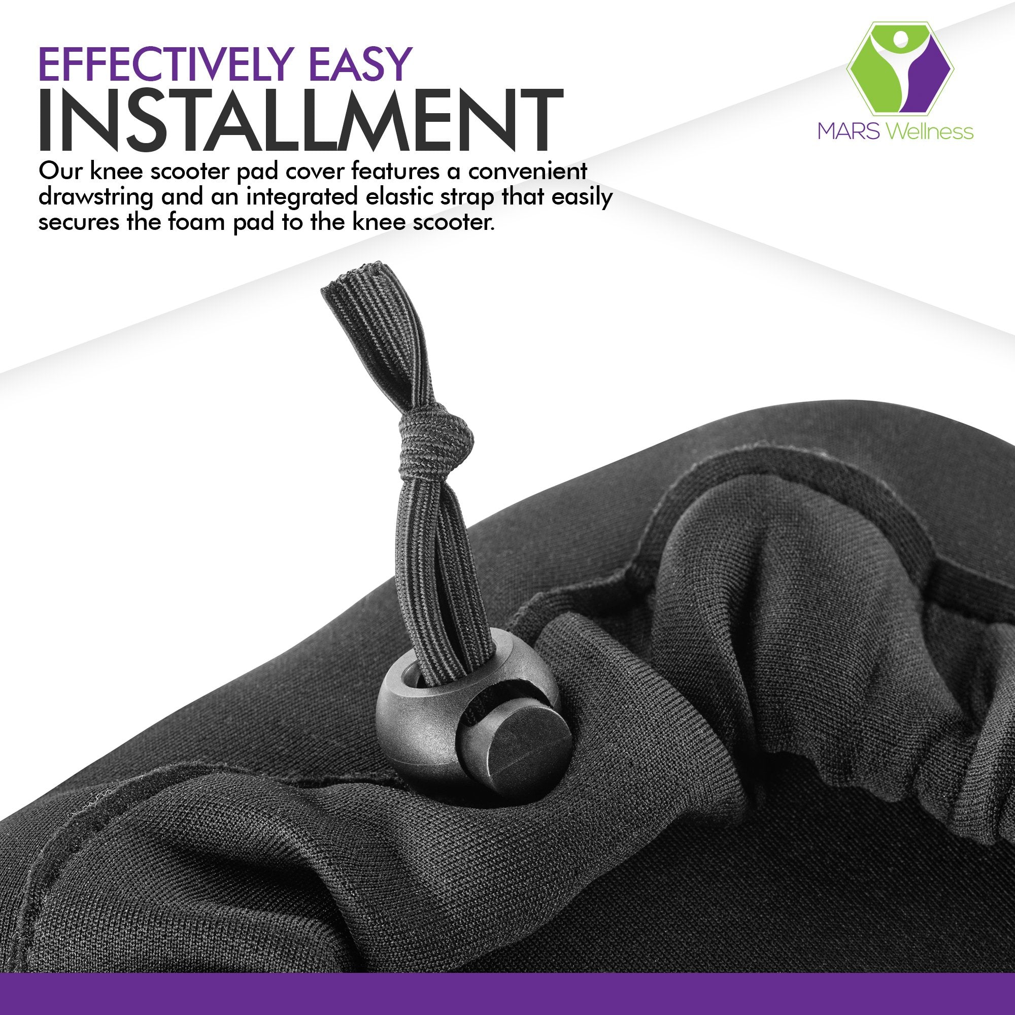 - Easy to Install - Our knee scooter pad cover features a convenient drawstring and an integrated elastic strap that easily secures the foam pad to the knee scooter. It attaches to the existing kneepad in a few seconds and offers a secure and non-slip fit.