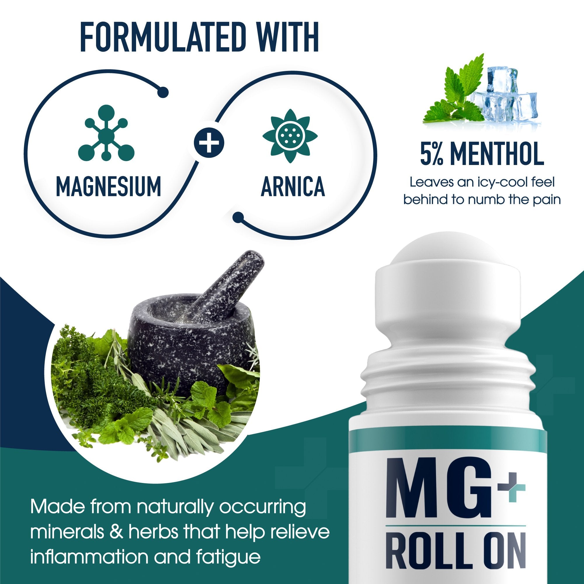 Mars Wellness MG+ Cooling Roll on Pain Relief (3 oz) – Fast Acting Arnica Roll on 5% Menthol Magnesium & Arnica – Penetrating Menthol Pain Relief Roll On Topical Pain Relief, Aches, Sore Muscle Pain