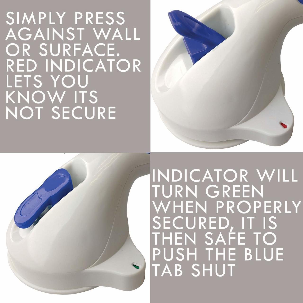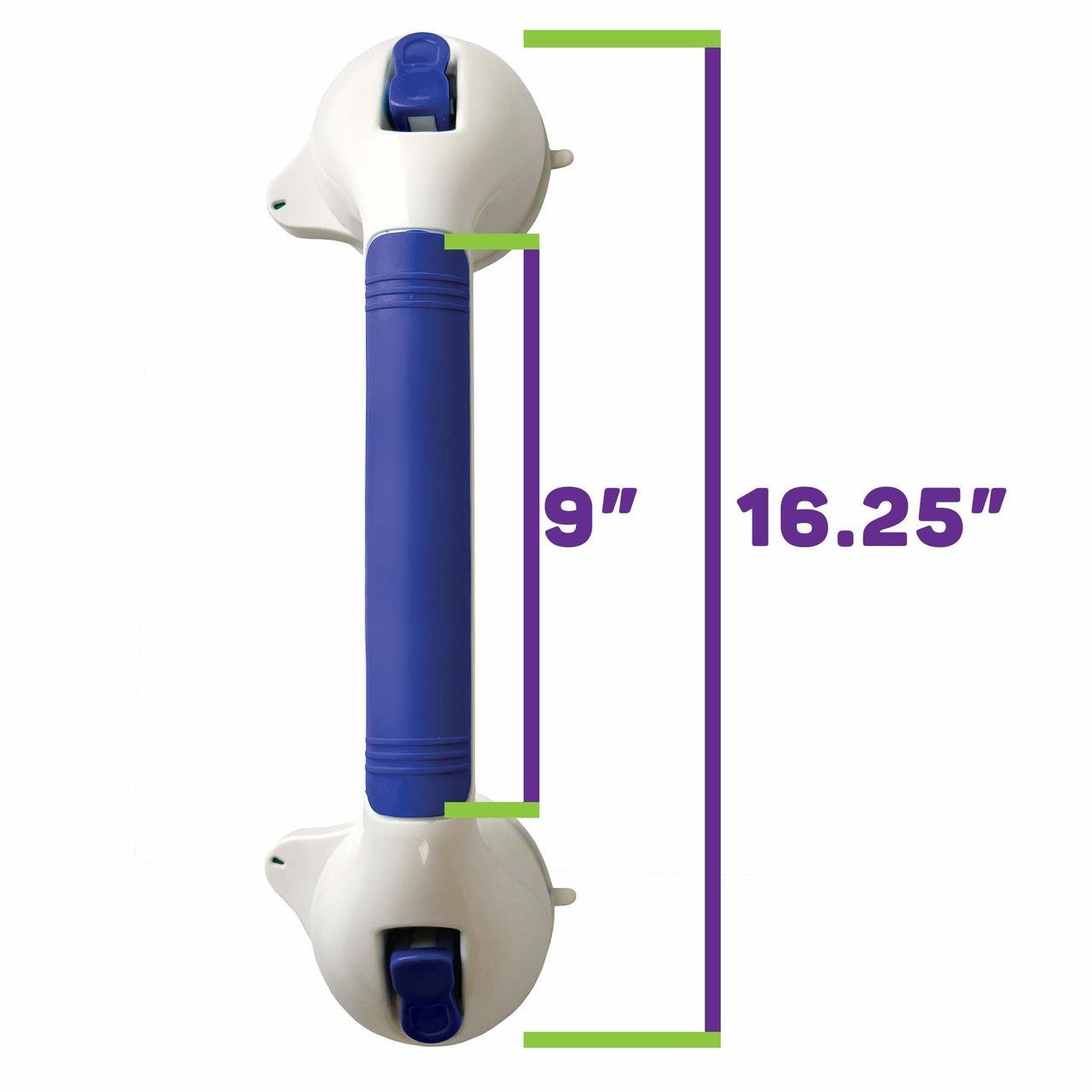 Mars Wellness Suction Grab Bar - Bathroom Shower Balance Handle - Dual Locking Indicators - Safety Rail Support - Handicap, Seniors, Kids, Elderly, Injured - Non Skid Material - 16.25"