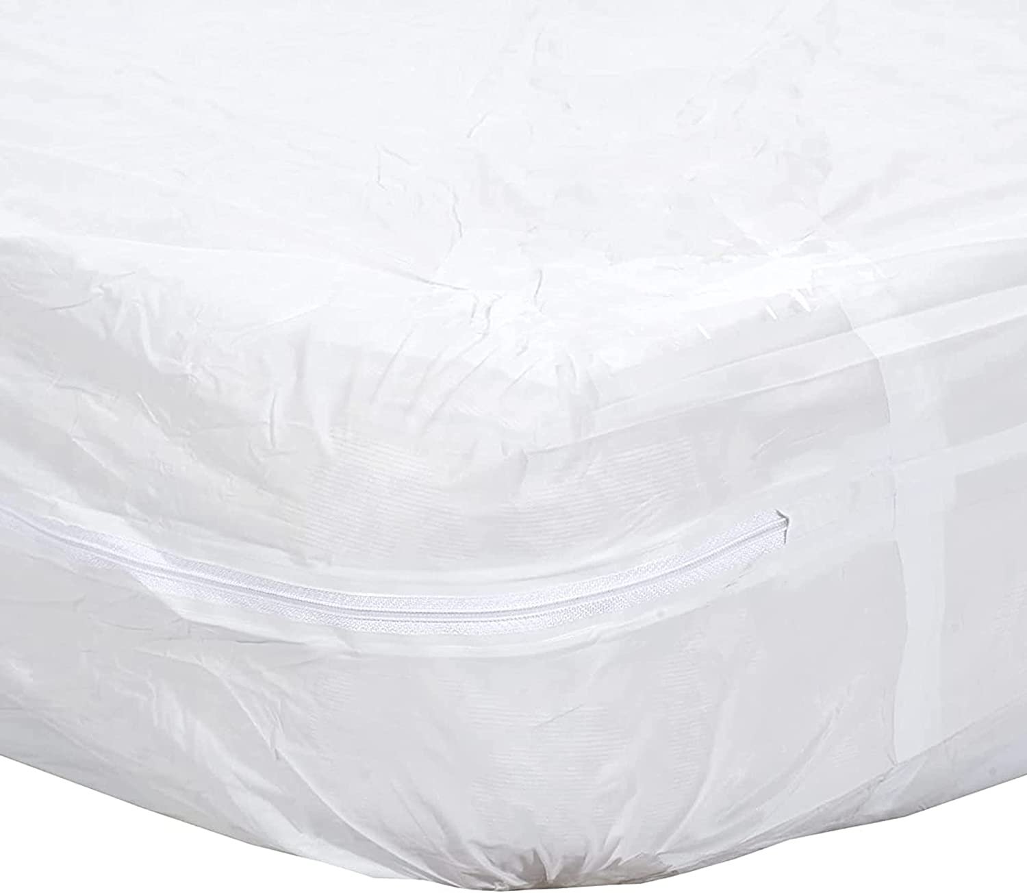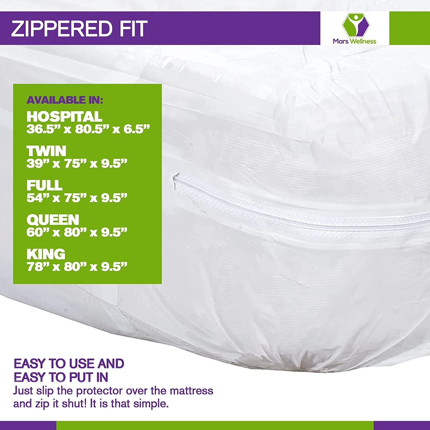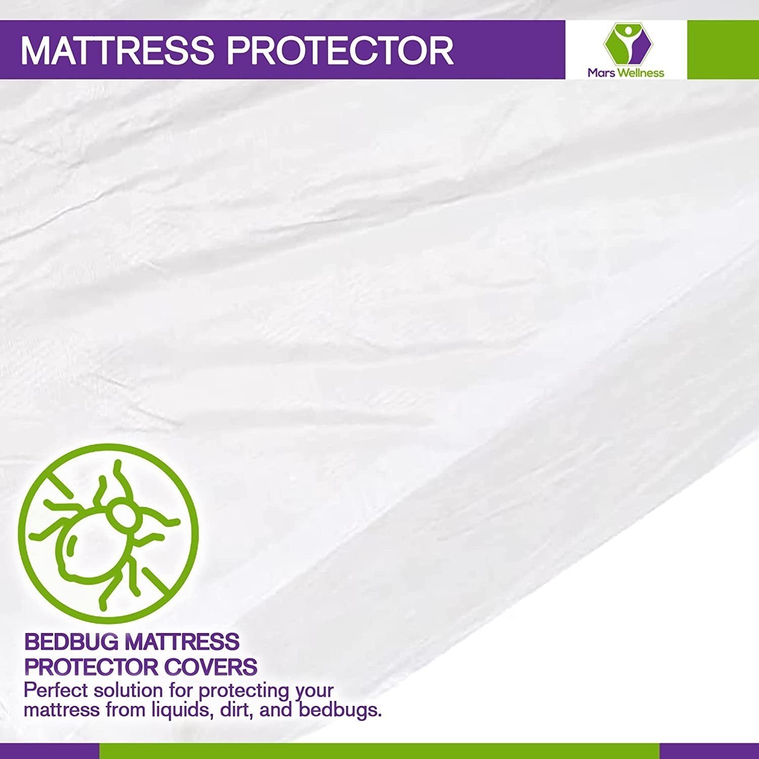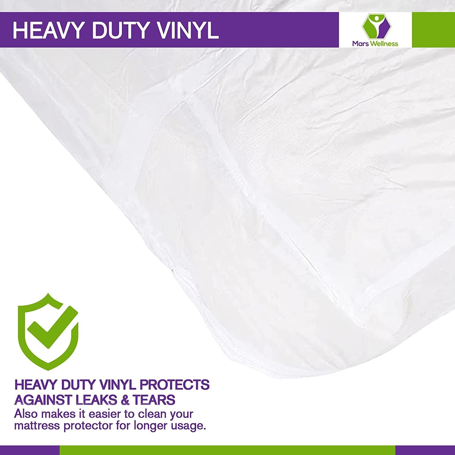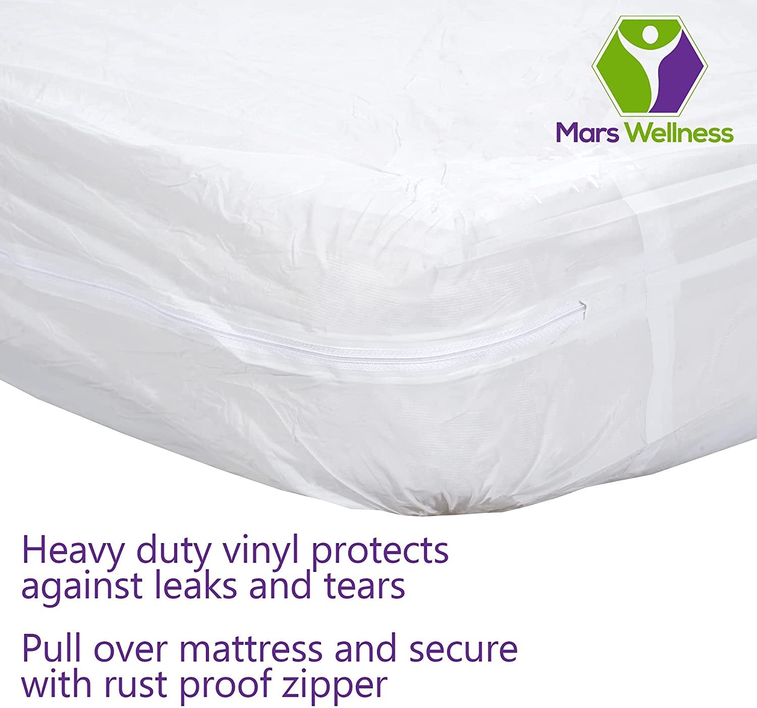 Mars Wellness Waterproof Vinyl Mattress Protector and Cover - Zippered White Mattress Cover Sheet Bed Bugs Mattress Cover