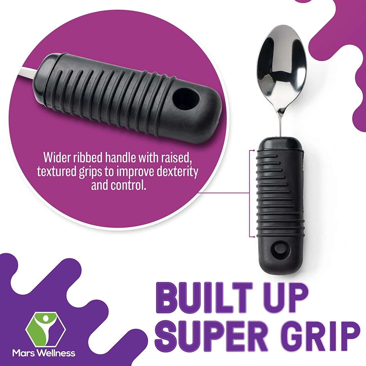 Mars Wellness Weighted Utensils Set - 3-Piece Heavy Duty, Stainless Steel Fork, Knife, and Spoon Adaptive Utensils Enhanced Stability While Eating for Elderly, Hand Tremors and Parkinson's Patients