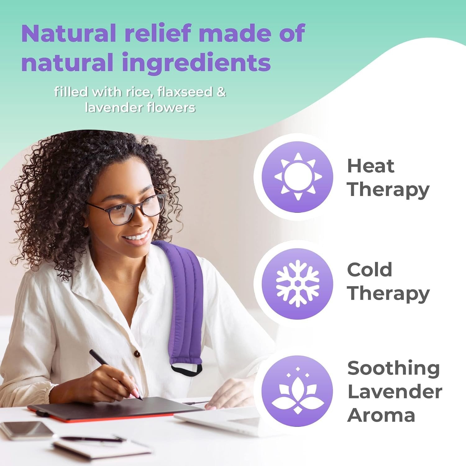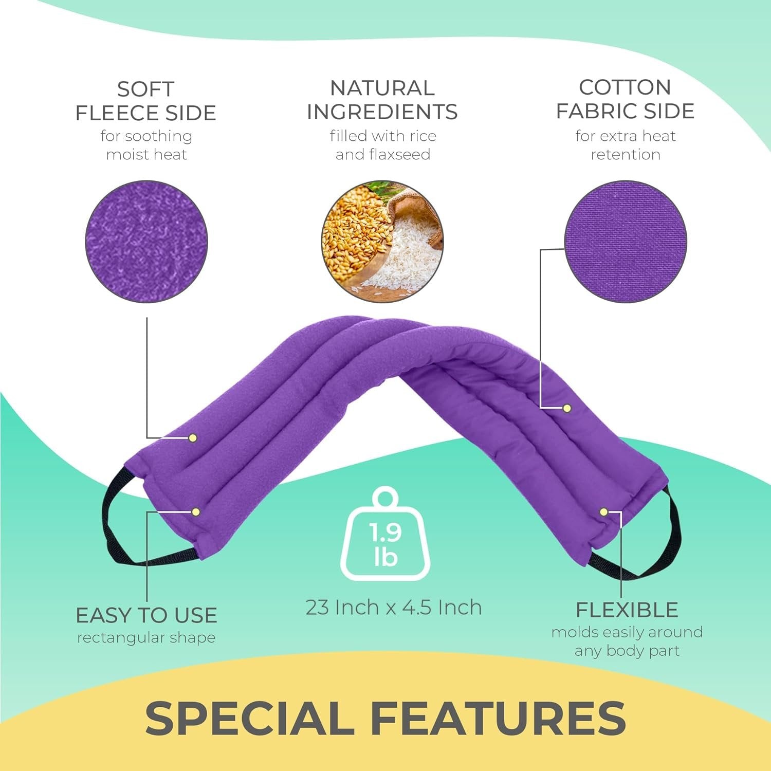 FIGHT INDOOR COLD: Say goodbye to cold offices or homes and say hello to the warmth provided by our microwavable moist neck, lower back, and shoulder heating pads. Our microwave heat pack utilizes flax and rice which are natural ingredients that excel at holding heat for long periods of time. This heat pad for neck and shoulders, as well as other parts of the body, keeps you warm and cozy no matter where you are.