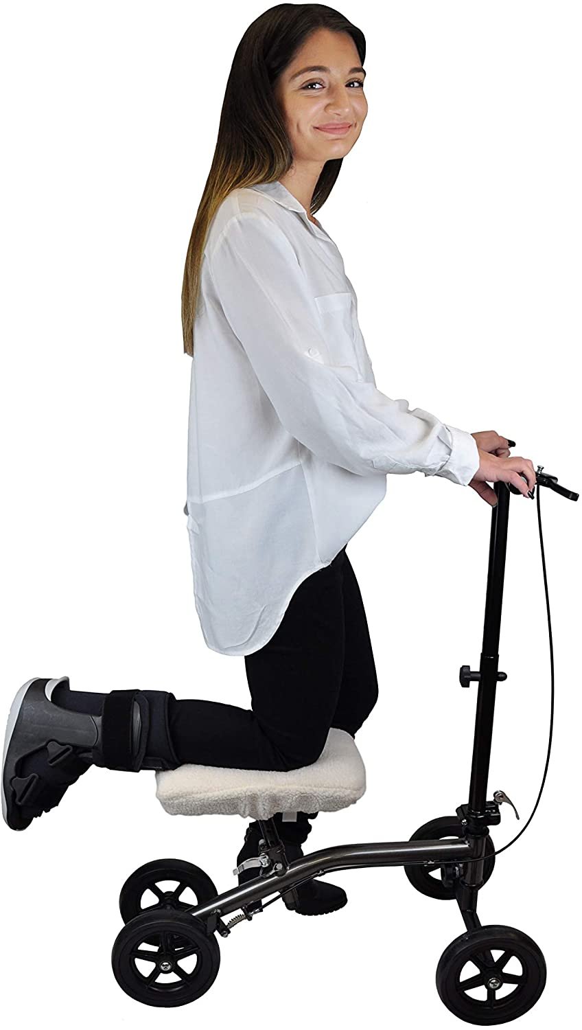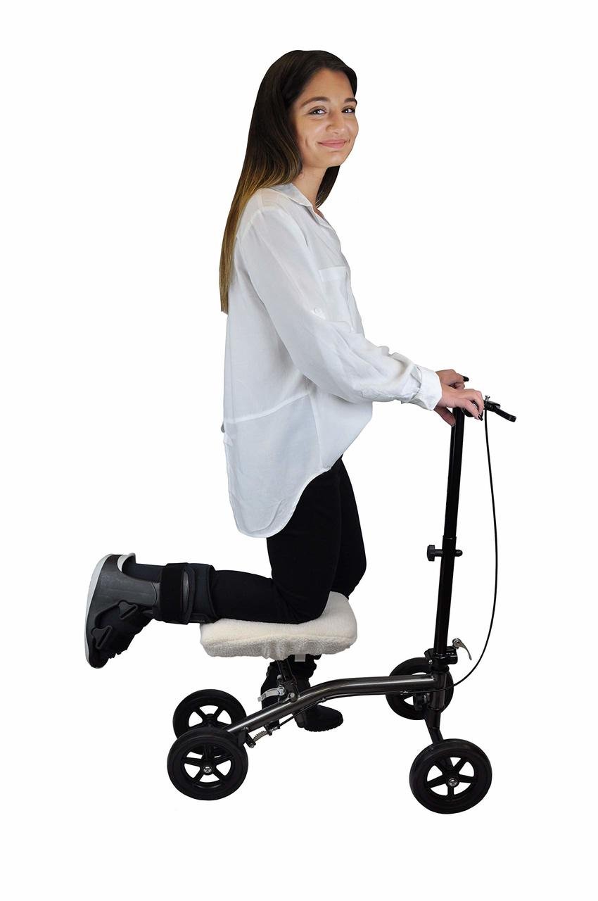Our Knee Scooter Pad with Soft Memory Foam offers the ultimate knee comfort and protection. It has a soft padding that cushions the knee and lower leg when in motion to relieve pain. It also reduces friction from normal movements and prevents skin irritation for comfortable everyday use. While recovering from a broken foot, ankle or leg, as well as foot surgery or medical conditions like ulcers, our knee pad cover is the perfect companion for your recovery. Your knee will thank you for the comfort and relief it offers! Our memory foam knee pad fits standard knee scooter models. If required to use a knee scooter for extended periods, this is an absolute must-have accessory. The knee scooter cover provides superior cushion and comfort. It features a unique memory foam technology that provides added comfort while distributing pressure evenly across the knee pad platform. The comfortable foam padding retains its shape through day-to-day use and effectively reduces fatigue in the hip, knee, and leg. The installation of our knee scooter cover cushion is quick and easy. With a convenient drawstring and an integrated elastic strap, the foam pad easily secures to the knee scooter. Attaching in just seconds, it provides a secure and non-slip fit to the existing kneepad. Made from high quality materials, the soft yet durable cover protects the knee scooter pads from everyday wear, while maximizing comfort by reducing friction and skin irritation. The protective cover effectively reduces wear and tear on knee walker pads and is suitable for long-lasting use.