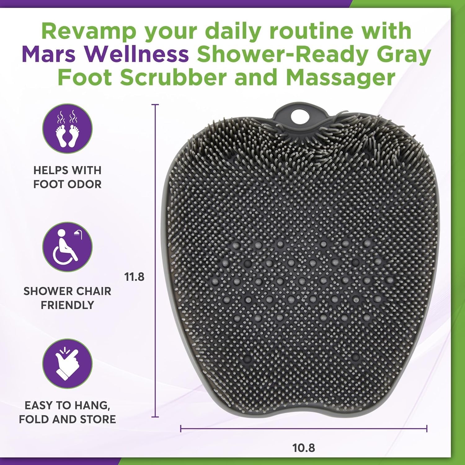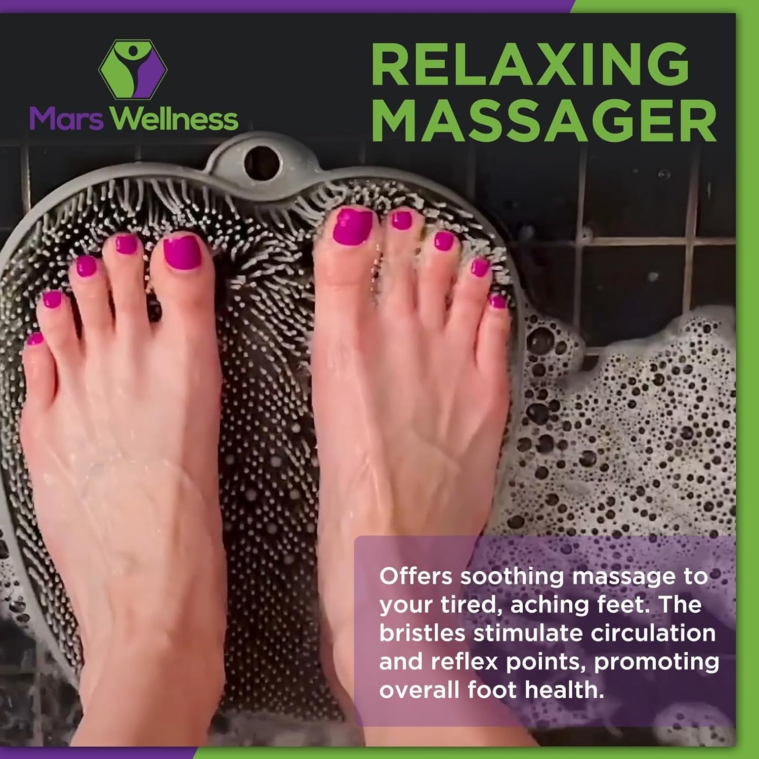 Shower Foot Scrubber and Massager - Foot Scrubber in Shower - Suction Foot Scrubber - Cleaner and Massager Mat - Improves Circulation - Easy to Store - Gray