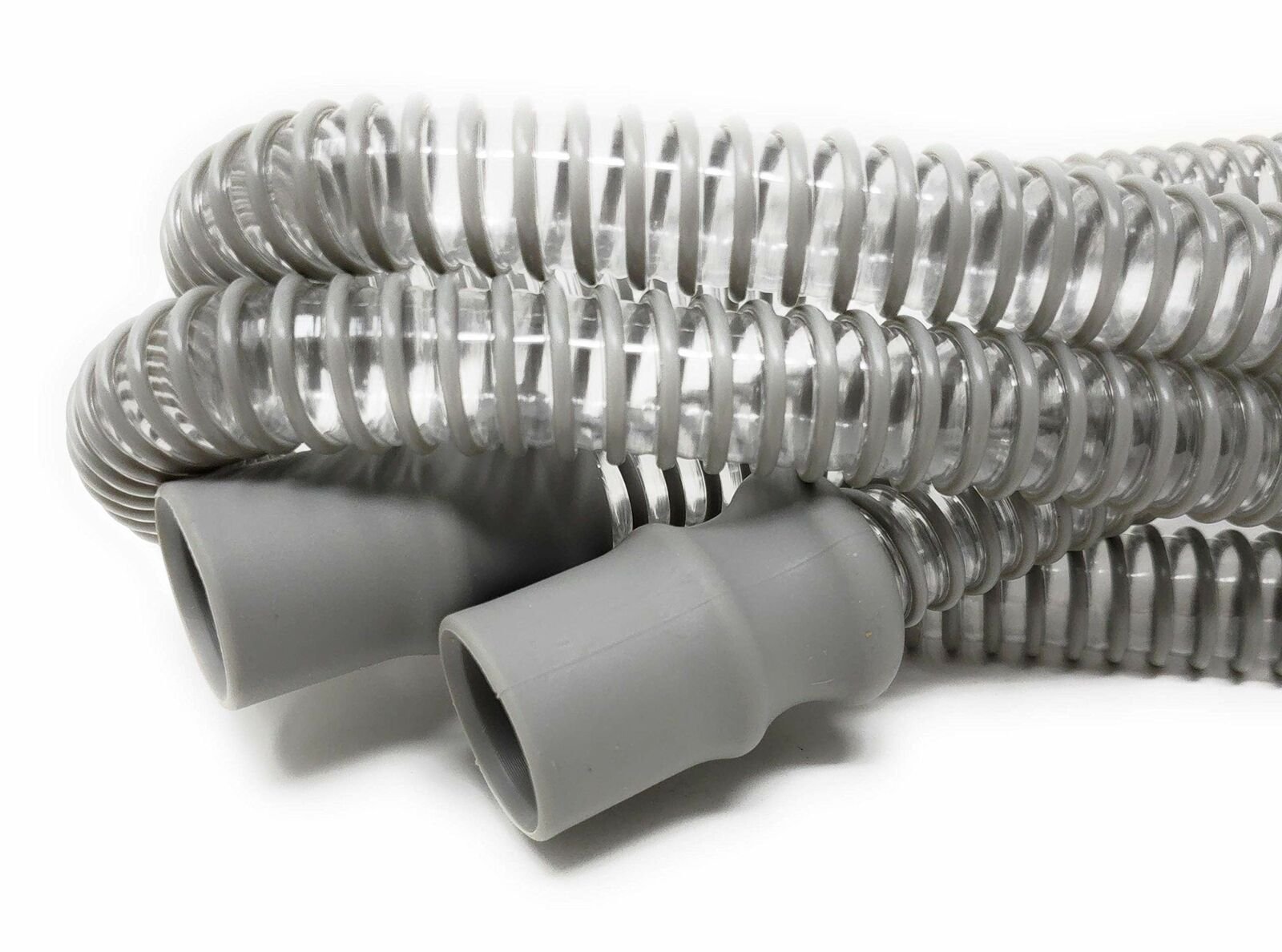 Our CPAP & BiPAP Hose Tubing is made of high quality, long lasting materials. The innovative smooth bore inner core and crenelated outer surface combine to create a durable, flexible tube that provides a whisper quiet connection between your mask and your machine. These tubes are re-usable and washable with durable medical grade rubber endcaps create a tight, long lasting seal with less cracking over time than older plastic products